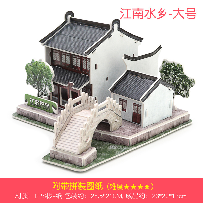 3D 수제 퍼즐 3 ~ 6 세 어린이 교육 조립 DIY 하우스 장난감 종이 빌딩 캐빈 모델스토어 가기