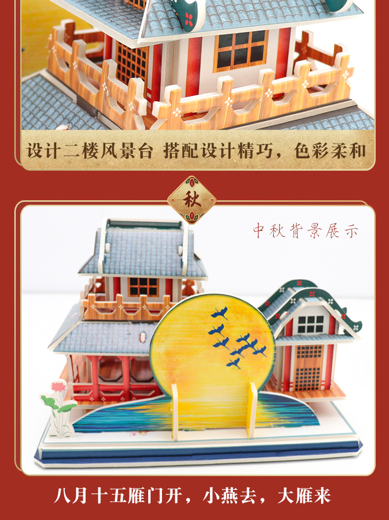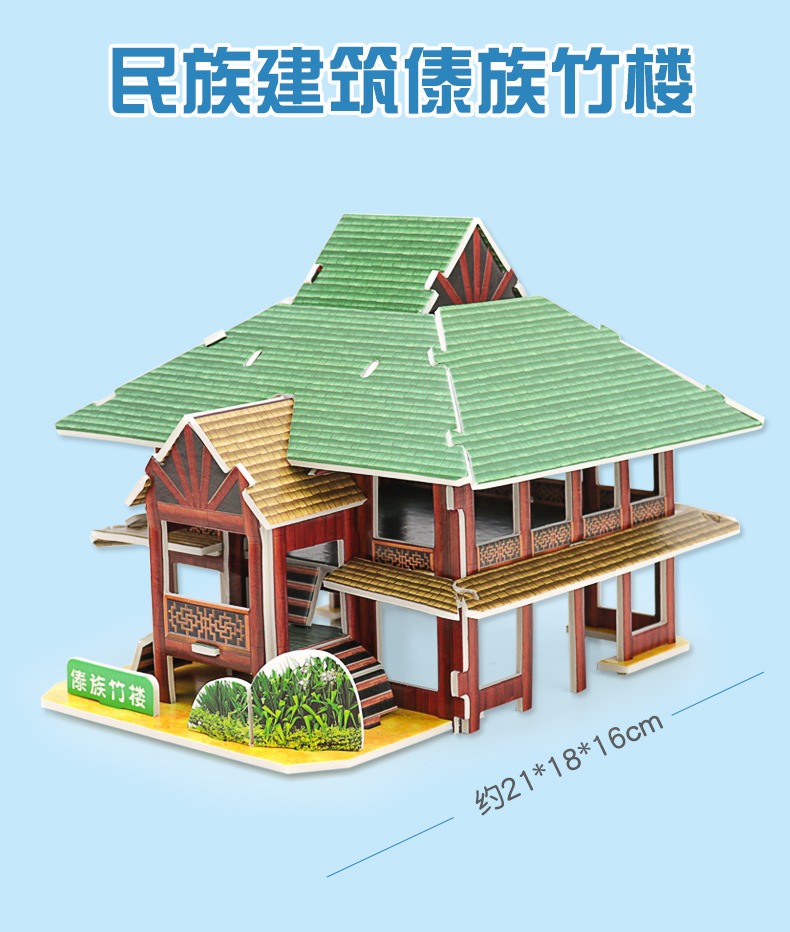 3D 수제 퍼즐 3 ~ 6 세 어린이 교육 조립 DIY 하우스 장난감 종이 빌딩 캐빈 모델