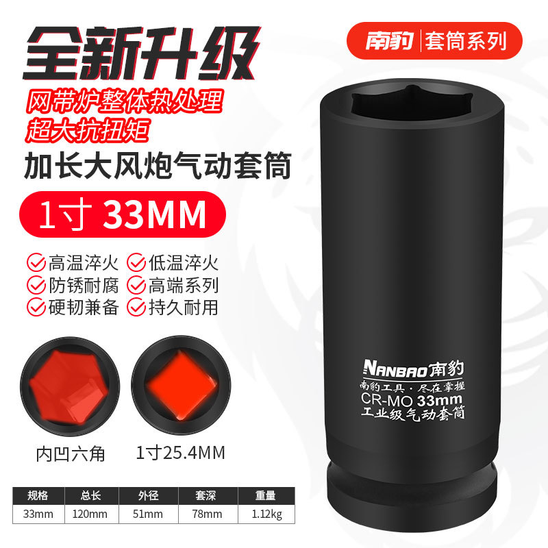 M & M & 1 인치 대포 소매 공압 강화 무거운 소매 노동 절약 렌치 두꺼운 타이어 소매 헤드스토어 가기