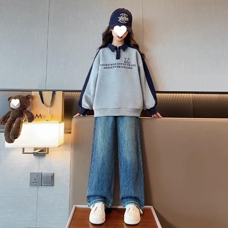 [9476 컬렉션] 여자 가을복 2025 신소녀 서양식 아동복 긴소매 폴로 칼라 세트스토어 가기