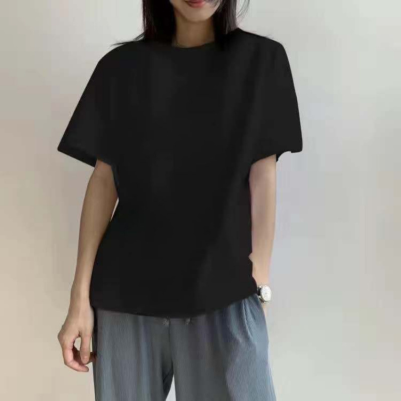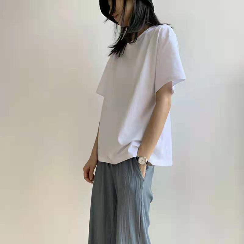 퓨어 코튼 화이트 티셔츠 여자 반소매 느슨한 한국 스타일 트렌디 2025 뉴 솔리드 컬러 탑 여자 여름 올 매치 BF 반소매 탑