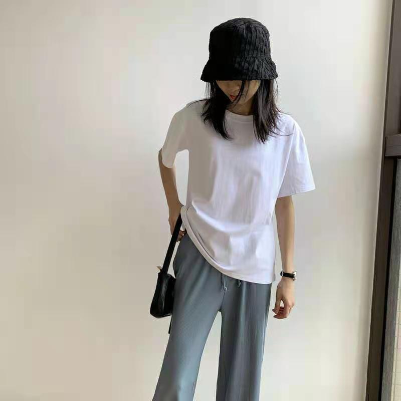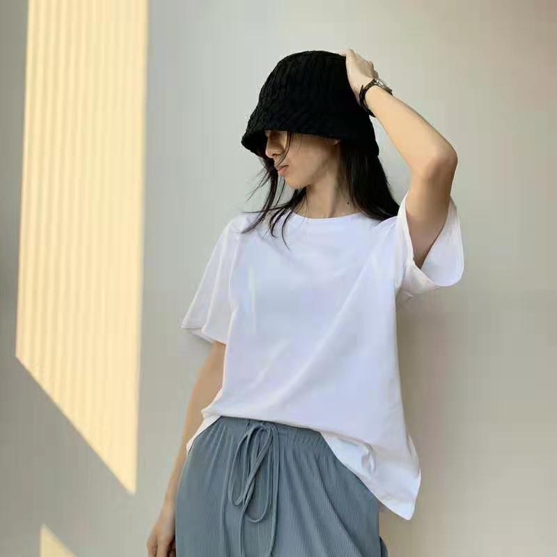 퓨어 코튼 화이트 티셔츠 여자 반소매 느슨한 한국 스타일 트렌디 2025 뉴 솔리드 컬러 탑 여자 여름 올 매치 BF 반소매 탑스토어 가기