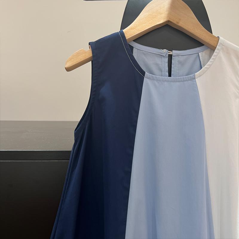 한국 아동복 2025 여름 소녀 원피스 유행 우아한 컬러 매칭 로터스 리프 민소매 Vip 스커트스토어 가기