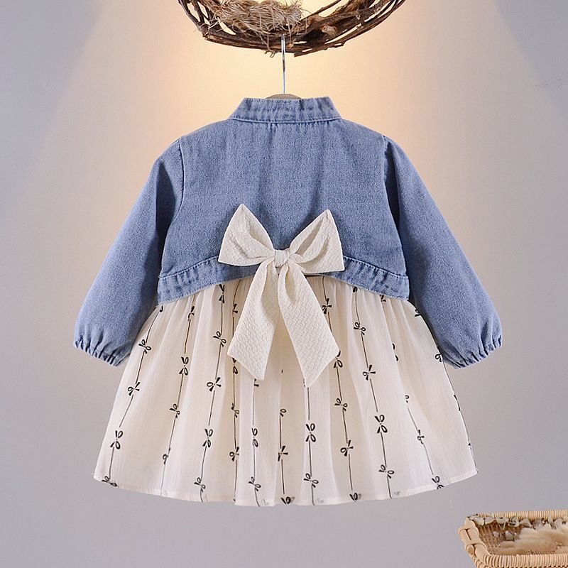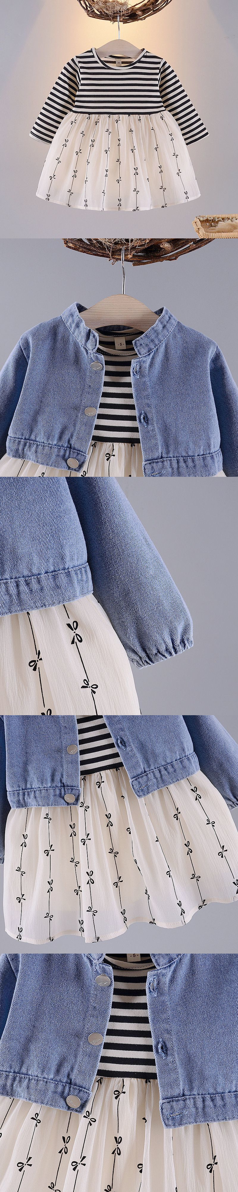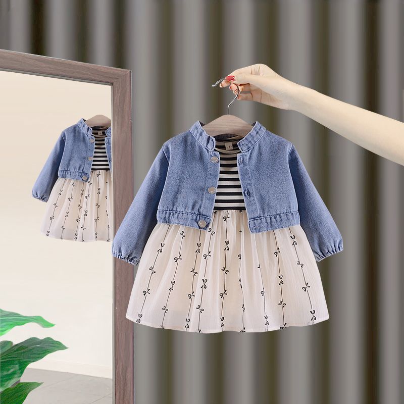 여자 아기 세트 25 새로운 두 조각 봄과 가을 원피스 서양식 데님 코트 거즈 스커트 공주 폭발스토어 가기