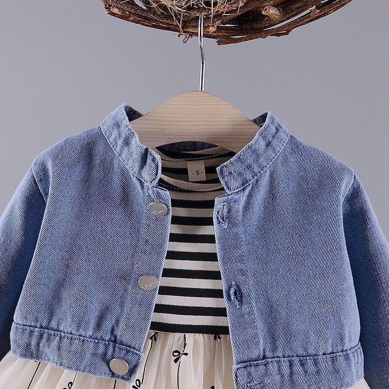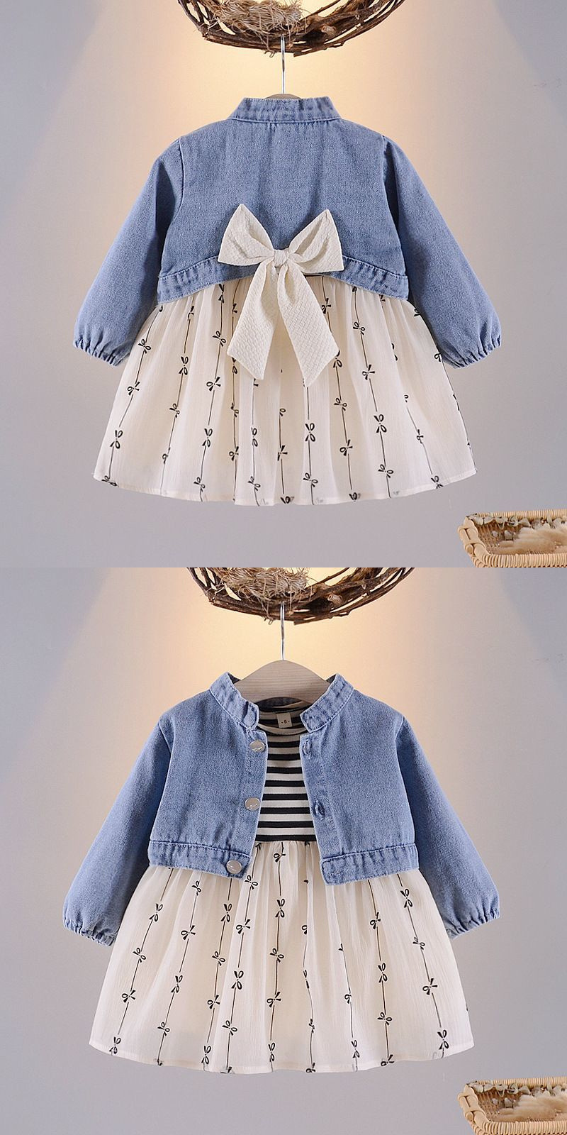 여자 아기 세트 25 새로운 두 조각 봄과 가을 원피스 서양식 데님 코트 거즈 스커트 공주 폭발