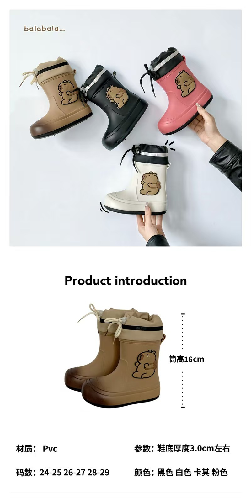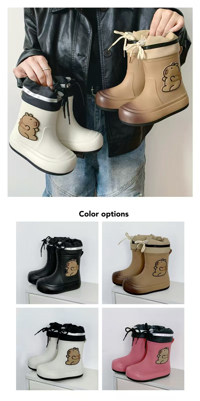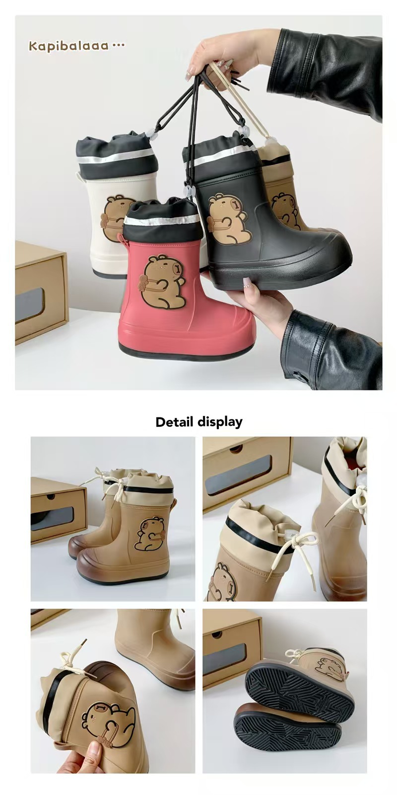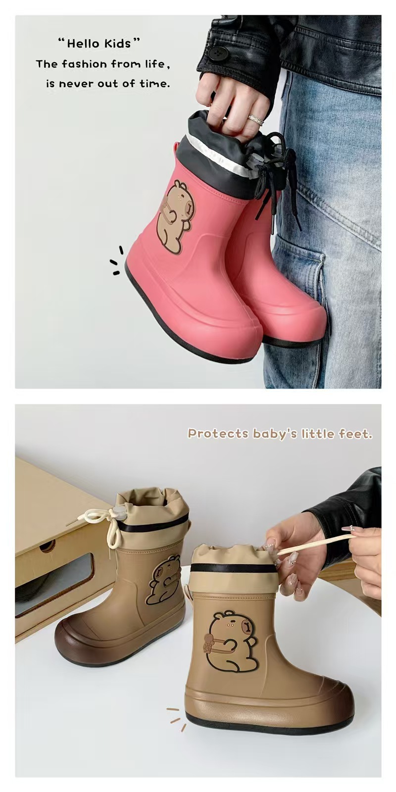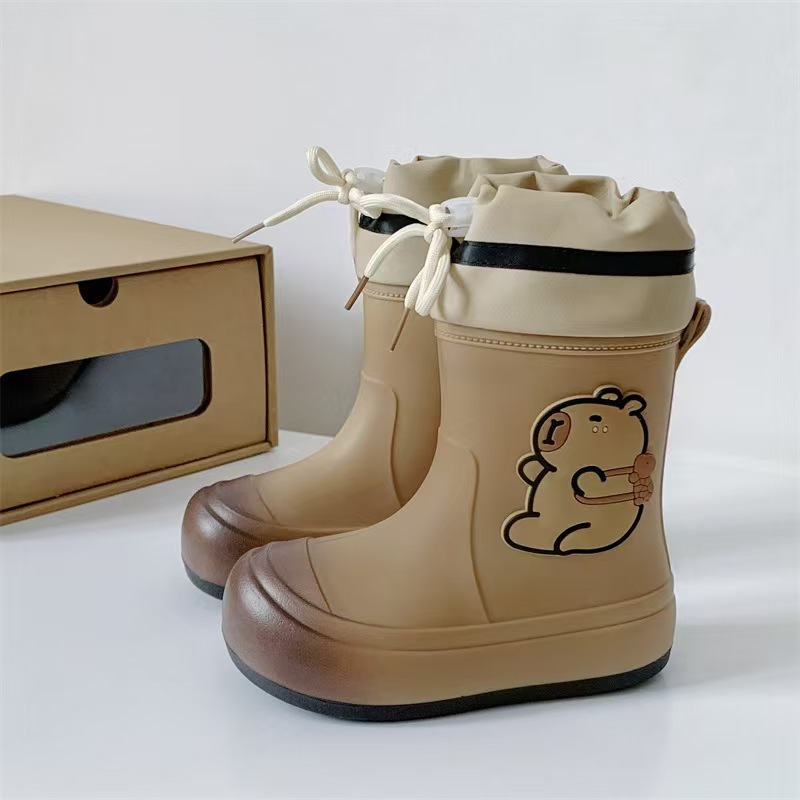 어린이 장화 2025 새로운 물 부츠 소년 미끄럼 방지 어린이 장화 소녀 방수 기모 물 신발 소년 튜브스토어 가기