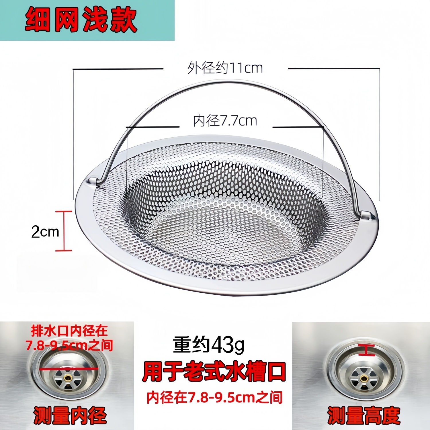 • 스테인리스 미세망 휴대용 11cm (높이 2cm)