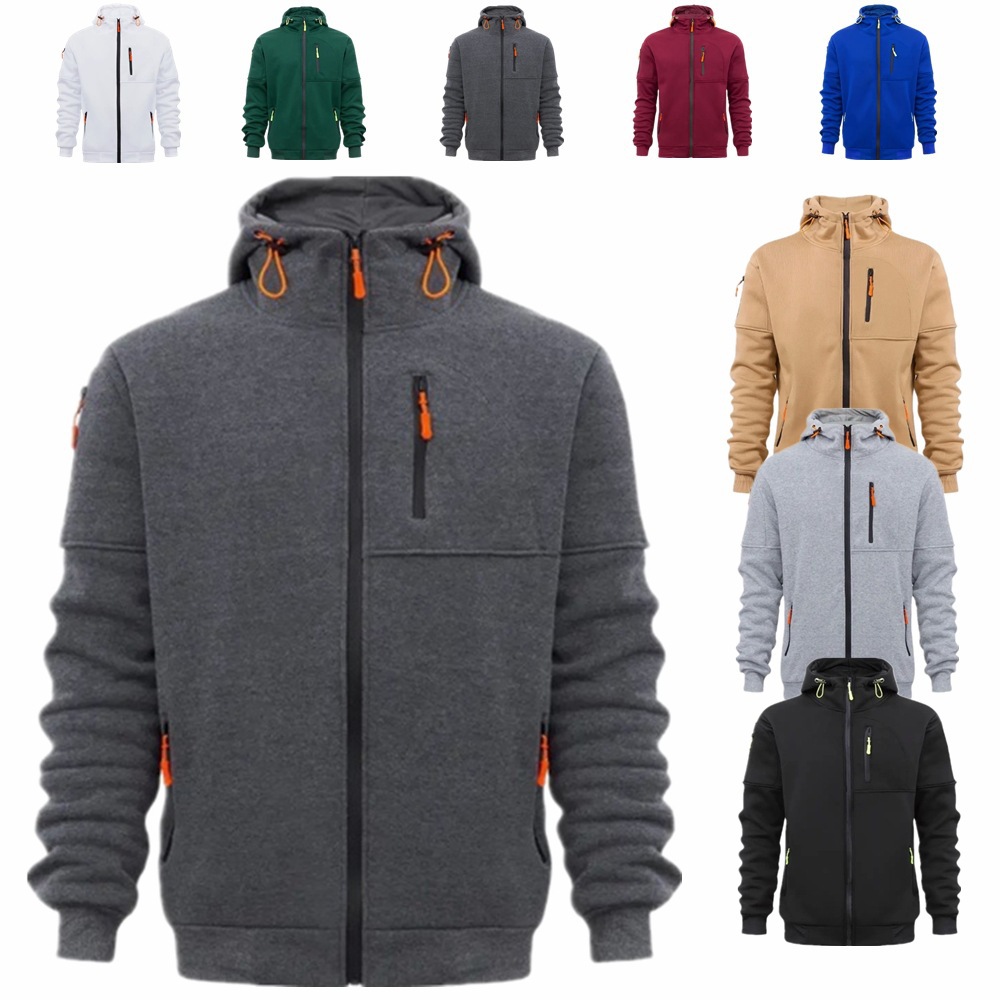2025 국경을 넘는 유럽과 미국의 폭발 남자 후드 캐주얼 스포츠 팔 지퍼 스웨터 멀티 포켓 카디건 재킷스토어 가기