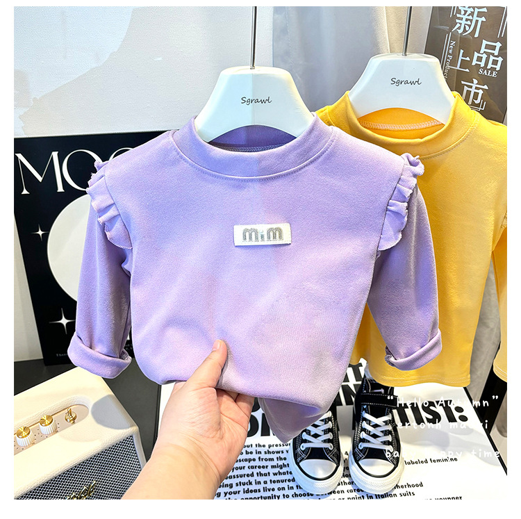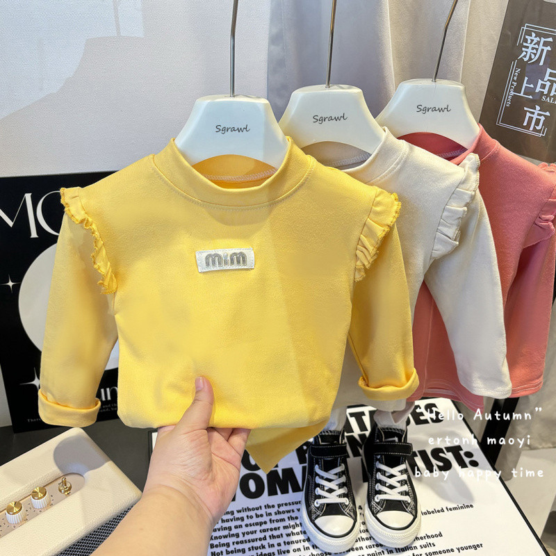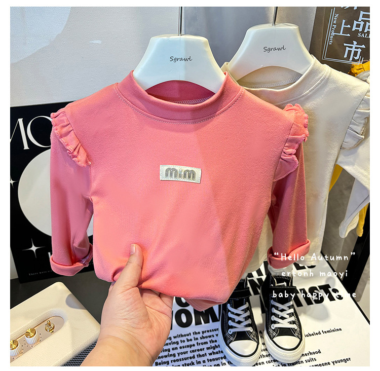 새 소녀베이스 셔츠 가을과 겨울 양털 플라잉 슬리브 한국 스타일 올 매치 하프 하이 칼라 가을 옷 큰 여자 싱글 탑