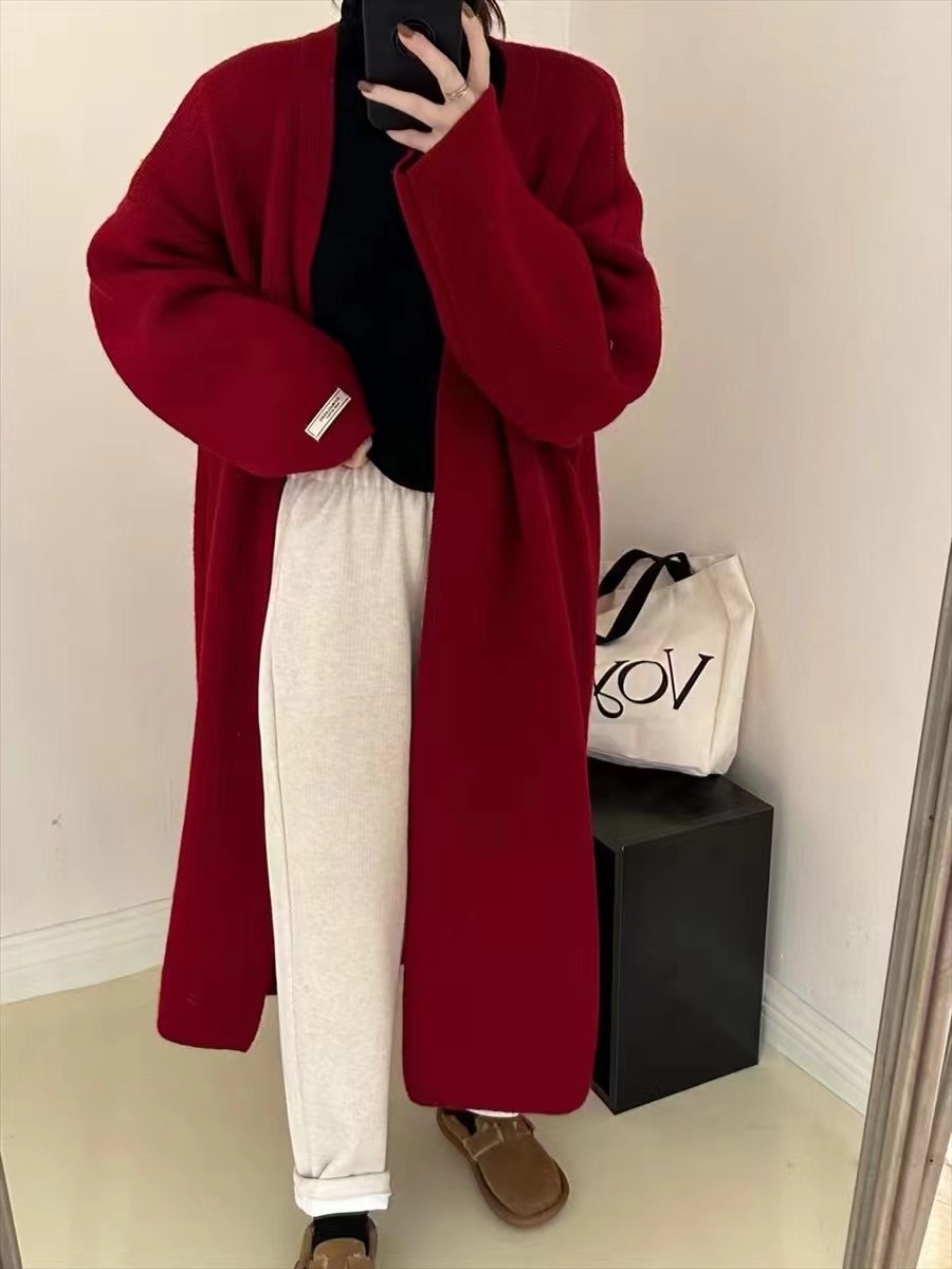 여성을위한 긴 스웨터 카디건 재킷 가을 새로운 스타일 게으른 스타일 대외 무역 버전 대형 긴 니트 카디건 두꺼운스토어 가기