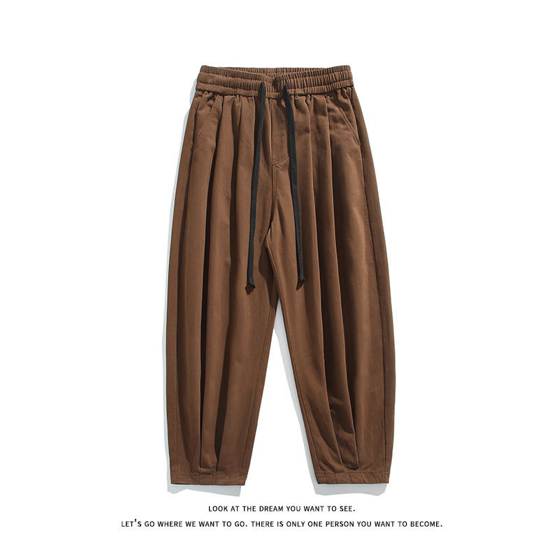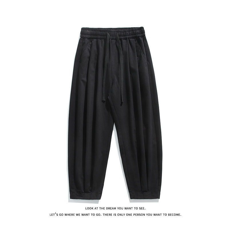 무료 배송 미국 스타일 트렌디 브랜드 높은 허리 슬리밍 캐주얼 바지 남성 봄과 여름 새로운 느슨한 넓은 다리 마이크로 콘 블루머 번들 발 수송