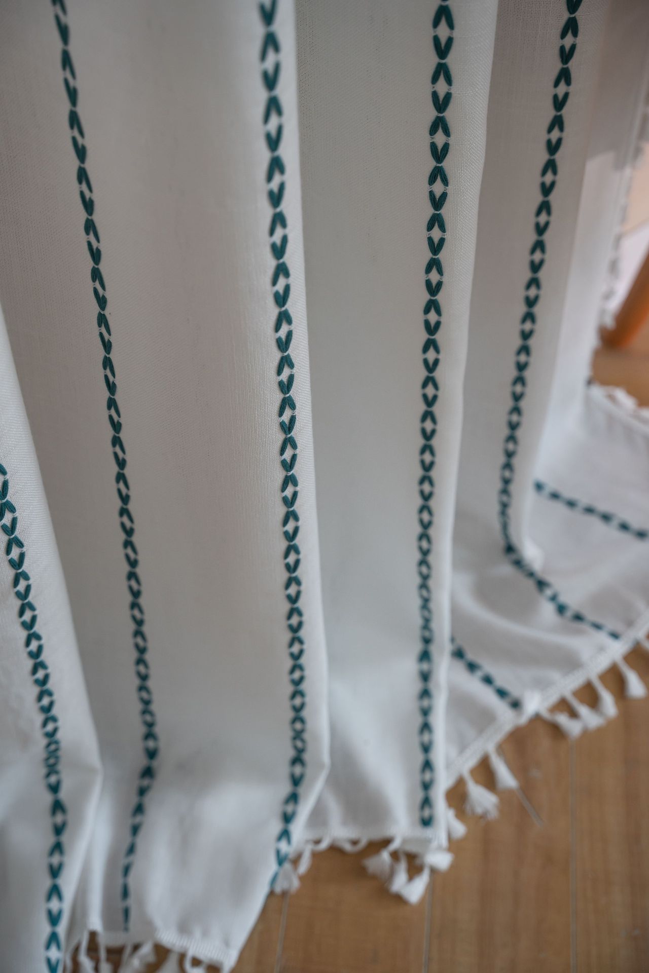 Yimanqiyun 커튼 완제품 줄무늬 수 놓은 단색 대비 색상 주방 커튼 미국 컨트리 스타일 반 차광 창스토어 가기