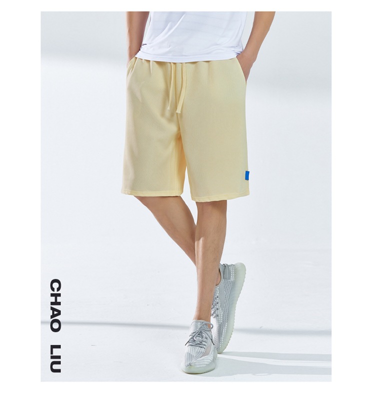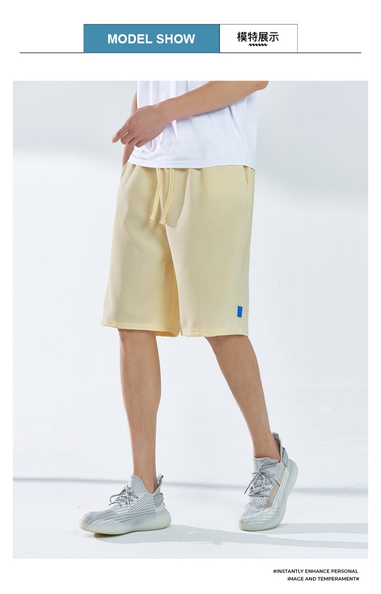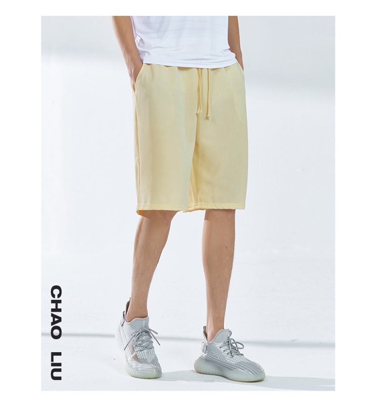 무료 배송 2025 봄 홍콩 스타일 간단한 반바지 연인을위한 남성과 여성의 단색 캐주얼 바지 니트 루즈 5스토어 가기