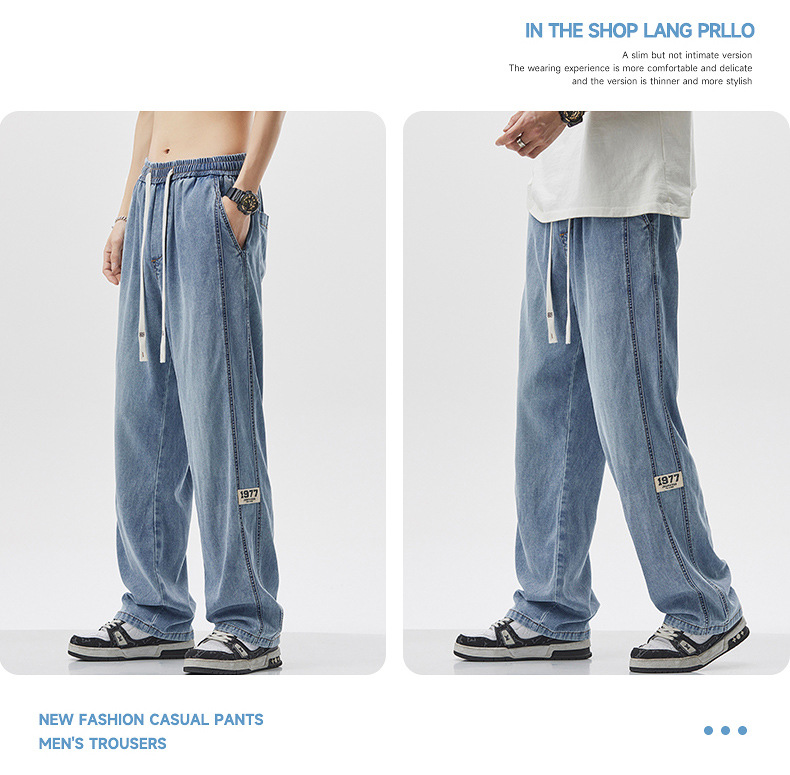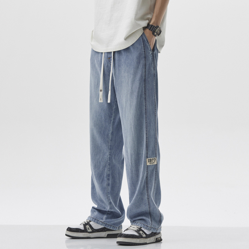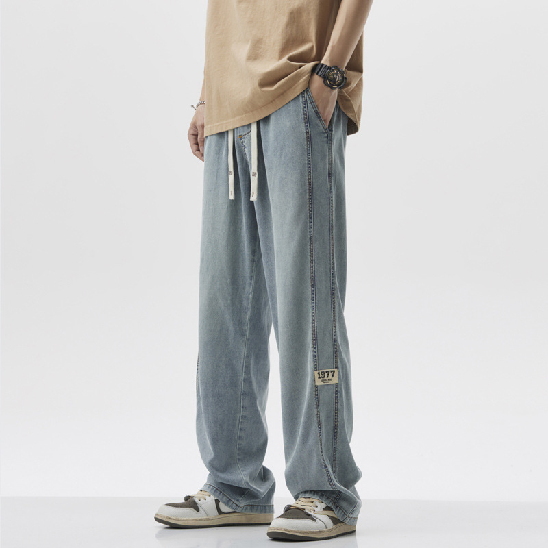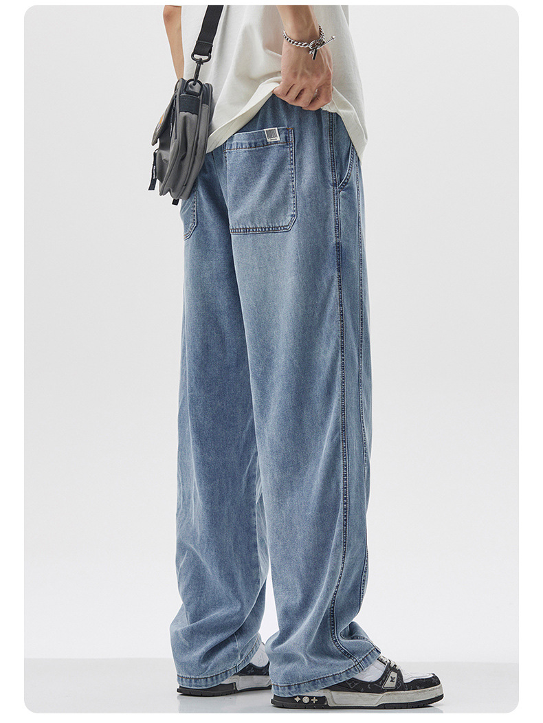무료 배송 2025 봄과 여름 새로운 텐셀 청바지 남성 스트레이트 루즈 패셔너블 브랜드 와이드 레그 아메리칸 스타일 하이 스트리트 올 매치 롱스토어 가기