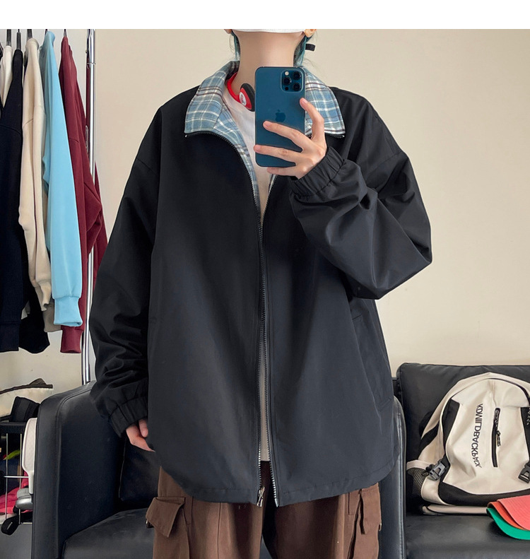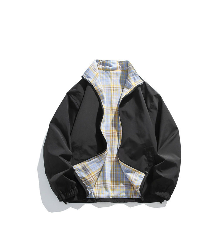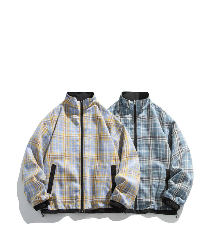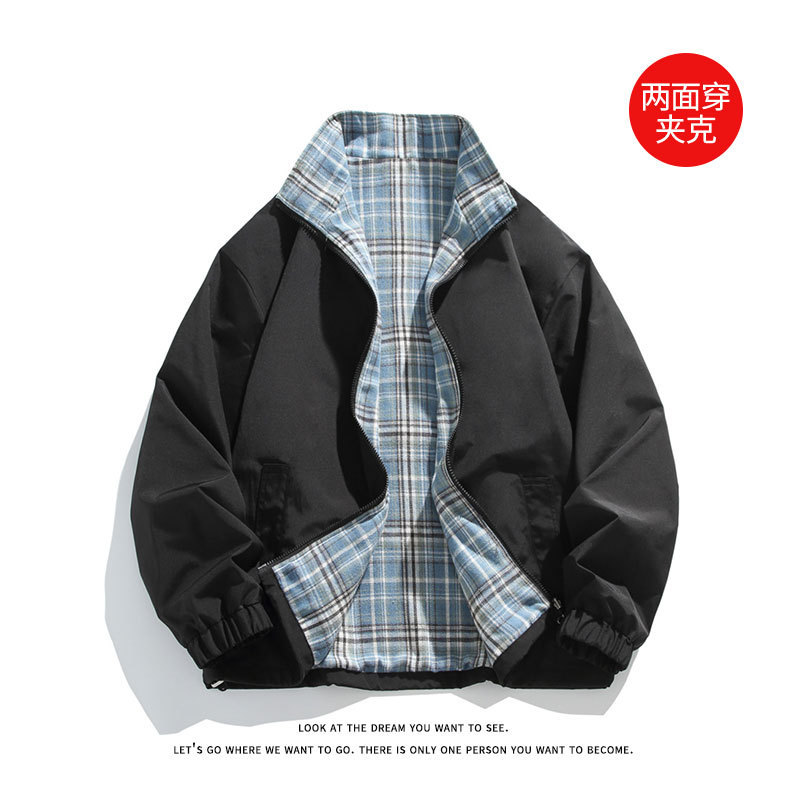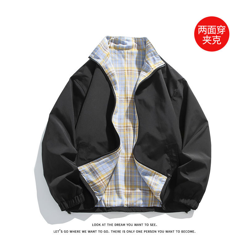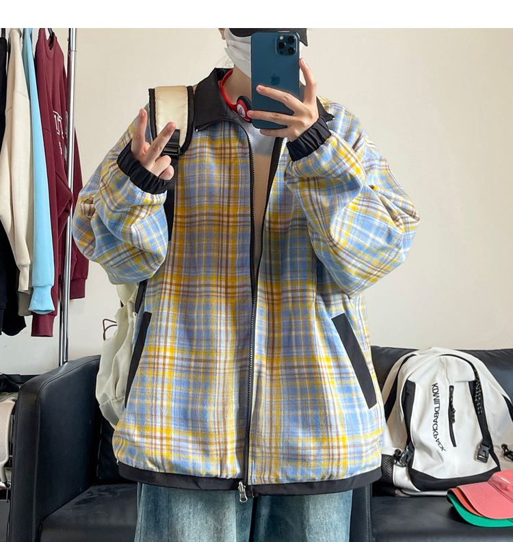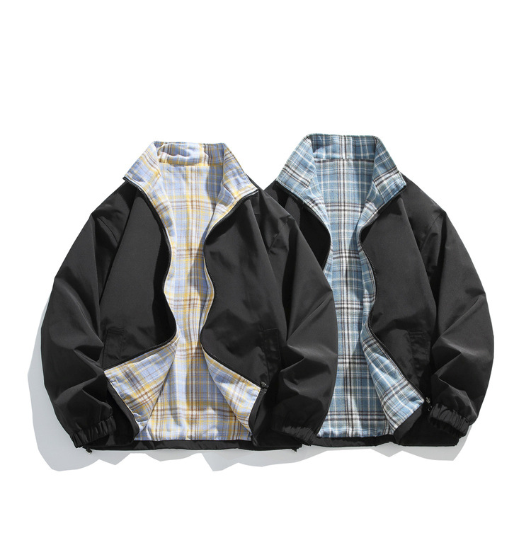 무료 배송 양면 격자 무늬 재킷 남자 2025 봄 새로운 청소년 느슨한 미국 스타일 유행 브랜드 캐주얼 올 매치 클립