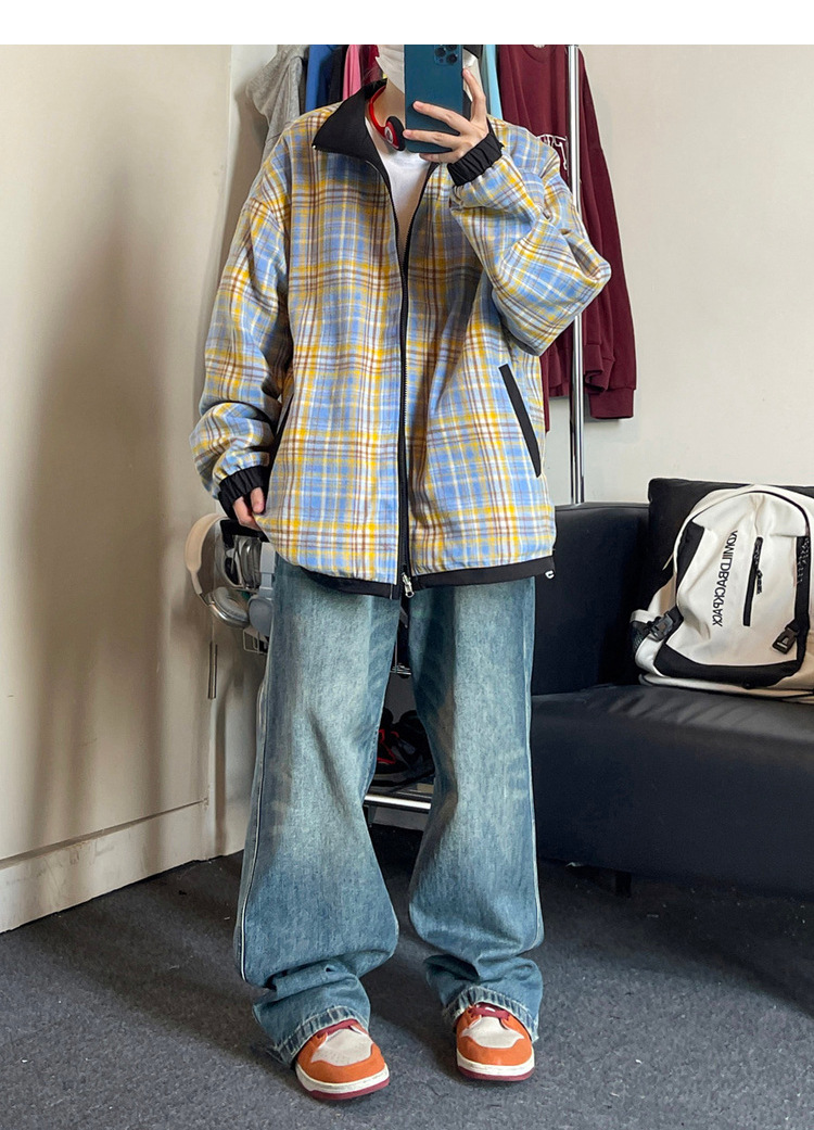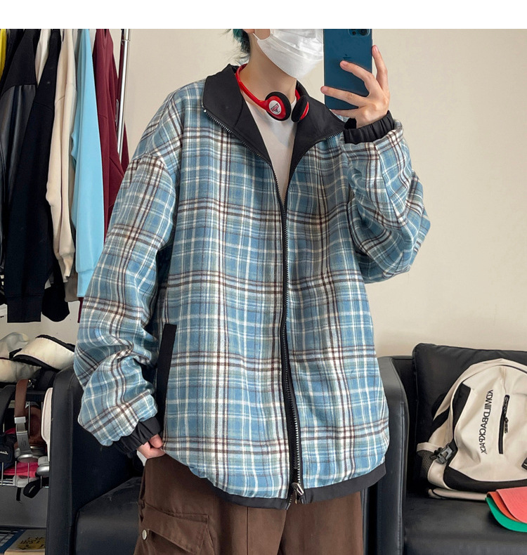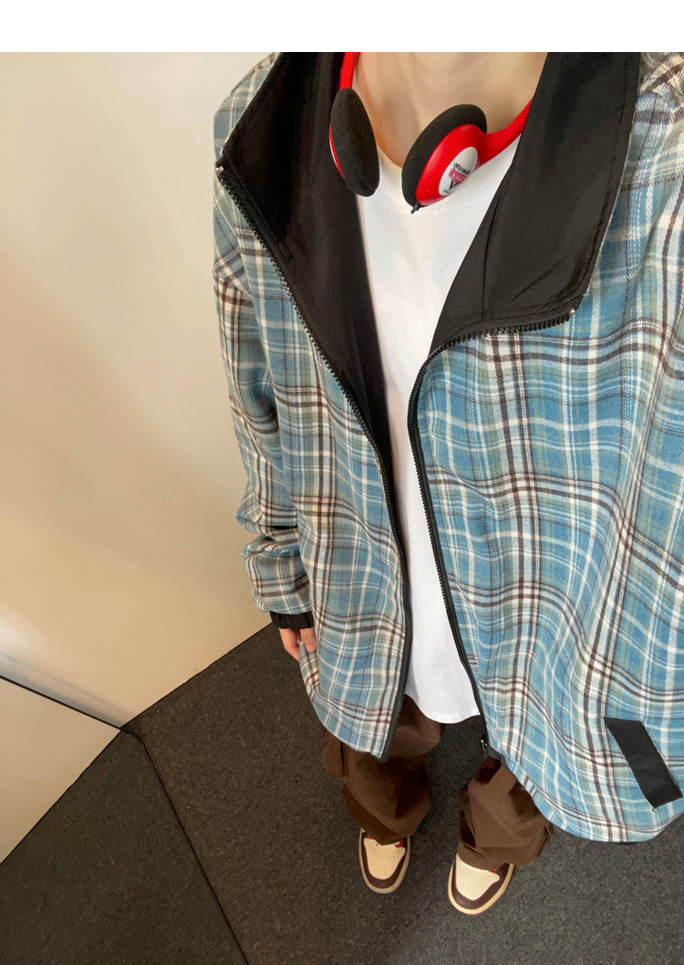 무료 배송 양면 격자 무늬 재킷 남자 2025 봄 새로운 청소년 느슨한 미국 스타일 유행 브랜드 캐주얼 올 매치 클립스토어 가기