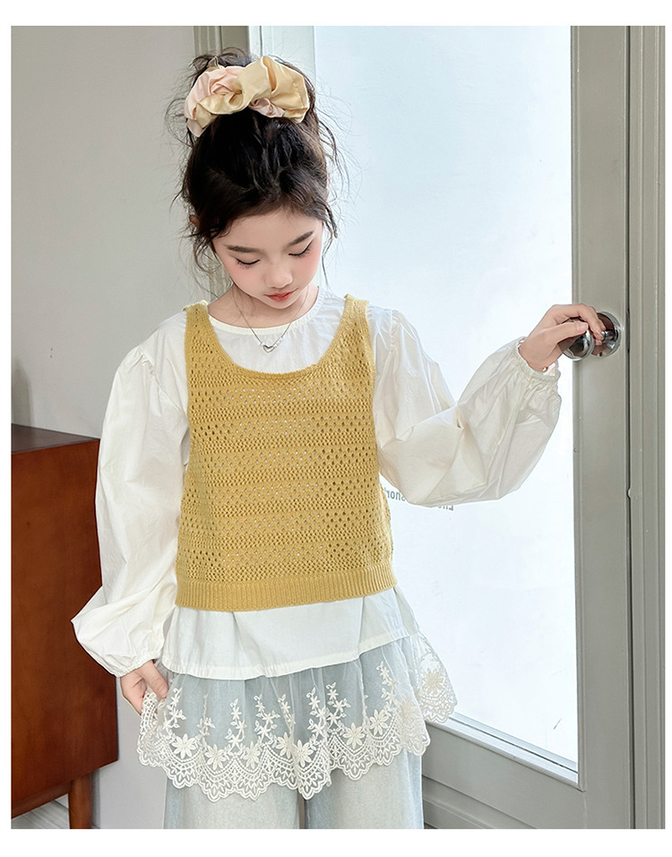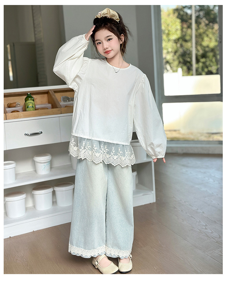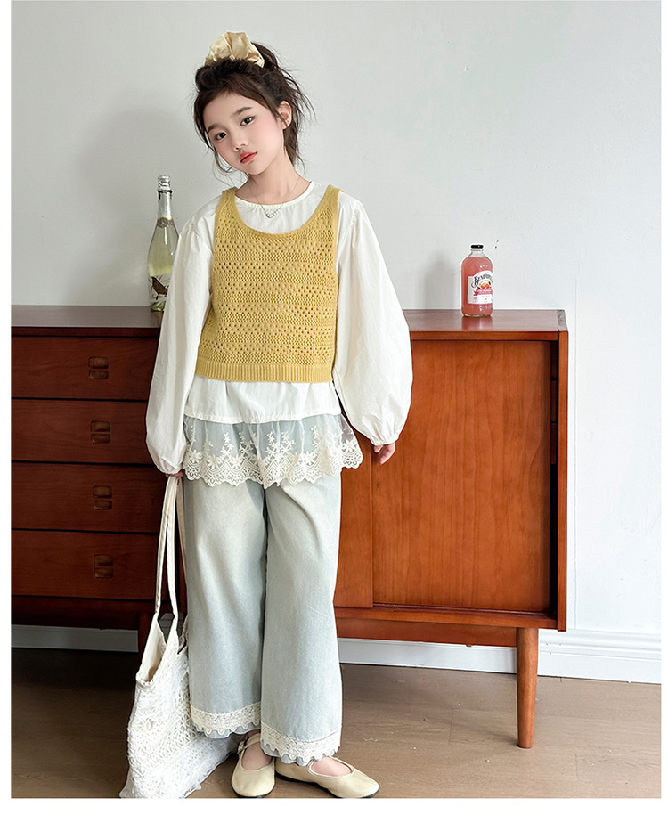 여자 한국 세트 2025 봄 새로운 큰 어린이 유행 서양식 조끼 레이스베이스 셔츠 청바지 3 피스 세트