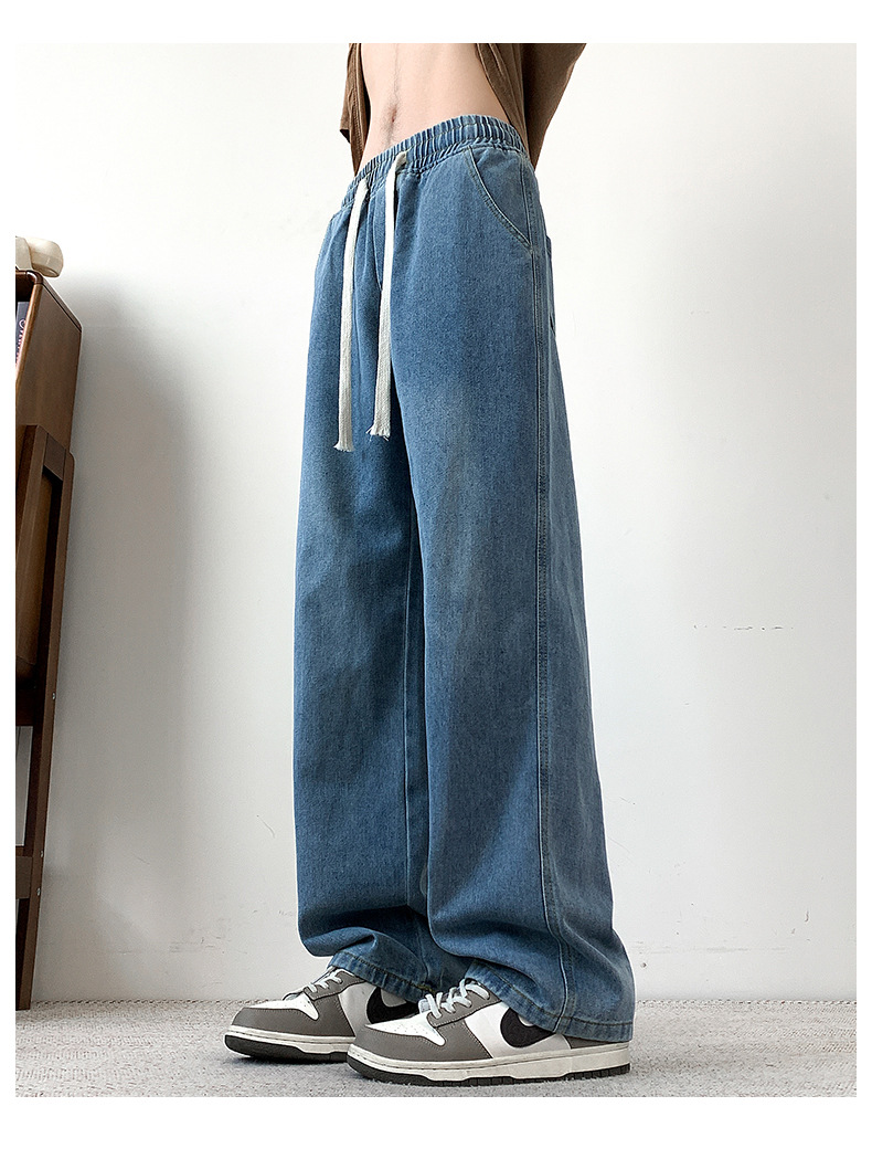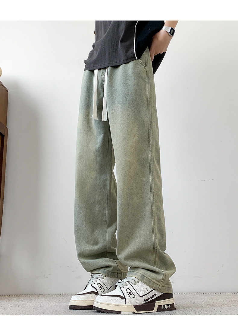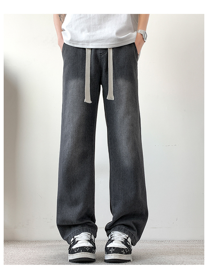 무료 배송 2025 새로운 남성 청바지 느슨한 스트레이트 튜브 느슨한 Staggard 허리 봄 패션 브랜드 넓은 다리 소년 긴 바지 캐주얼스토어 가기