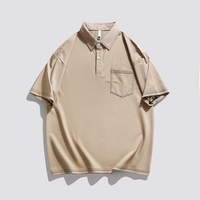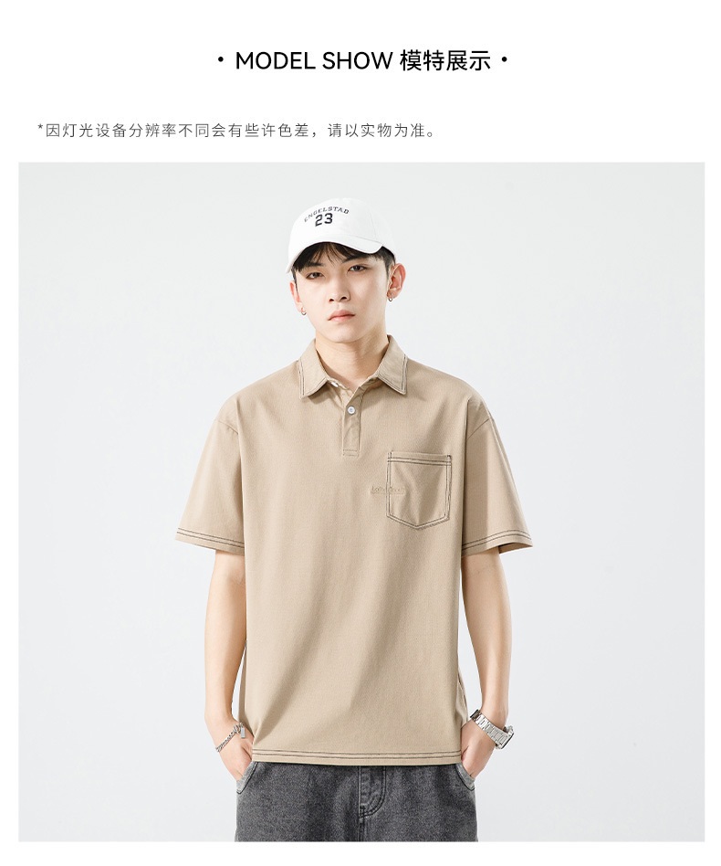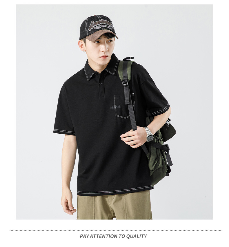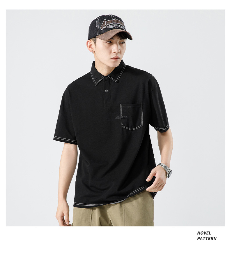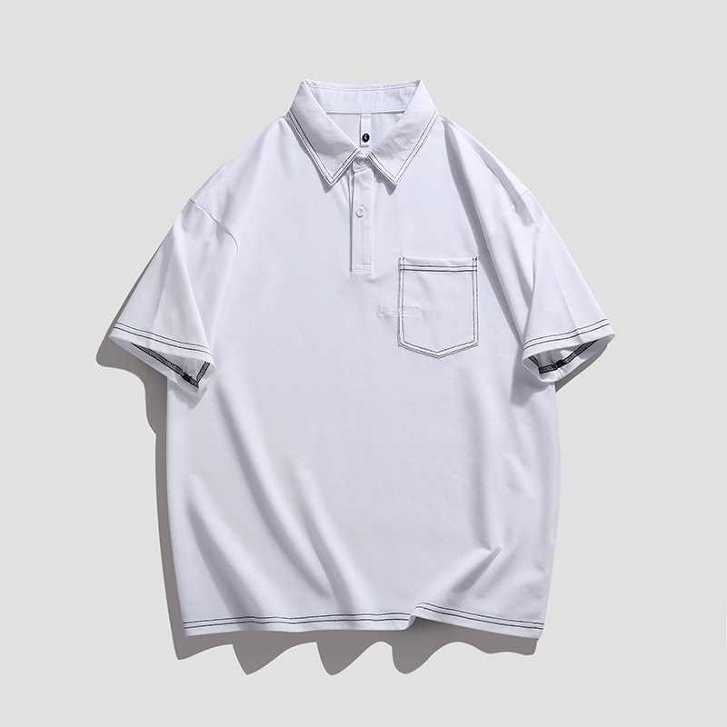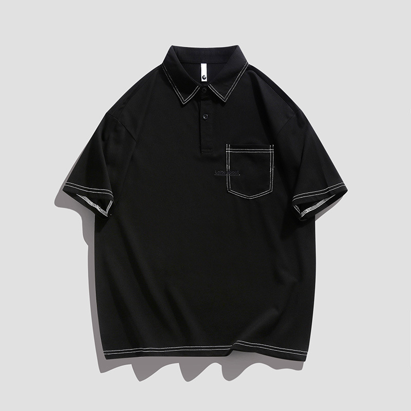무료 배송 진주면 반팔 폴로 셔츠 남자 2025 년 여름 새로운 한국 스타일 포켓 자수 남성 옷깃