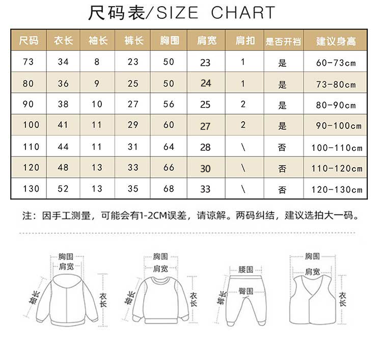 尺码:73-130建议年龄半岁-6岁,偏胖选大一码!