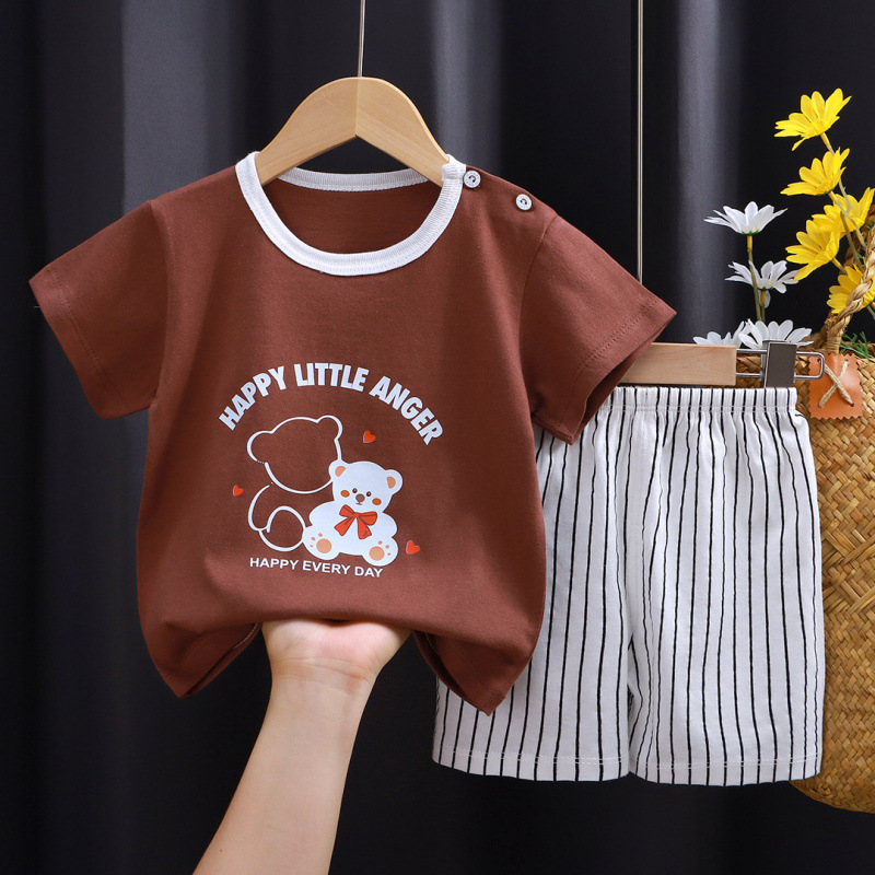 아동면 반팔 세트 여아 에어컨 의류 여름 의류 소년 티셔츠 아기 아기 옷 어린이 의류 도매