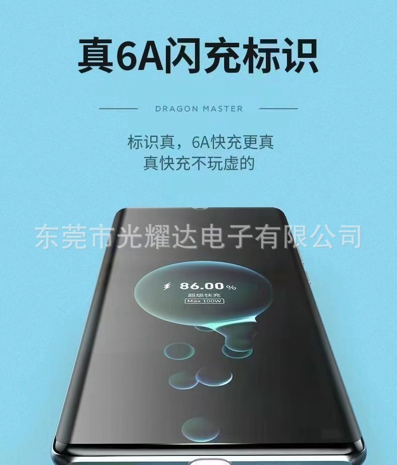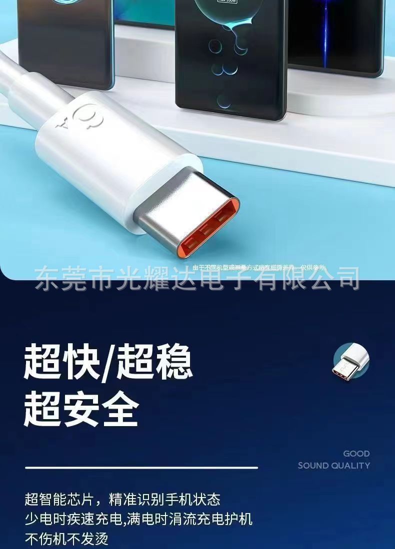 6A 슈퍼 빠른 충전 휴대 전화 유형-C 데이터 케이블 대담한 Xiaomi Huawei 안드로이드 66W 충전 케이블스토어 가기