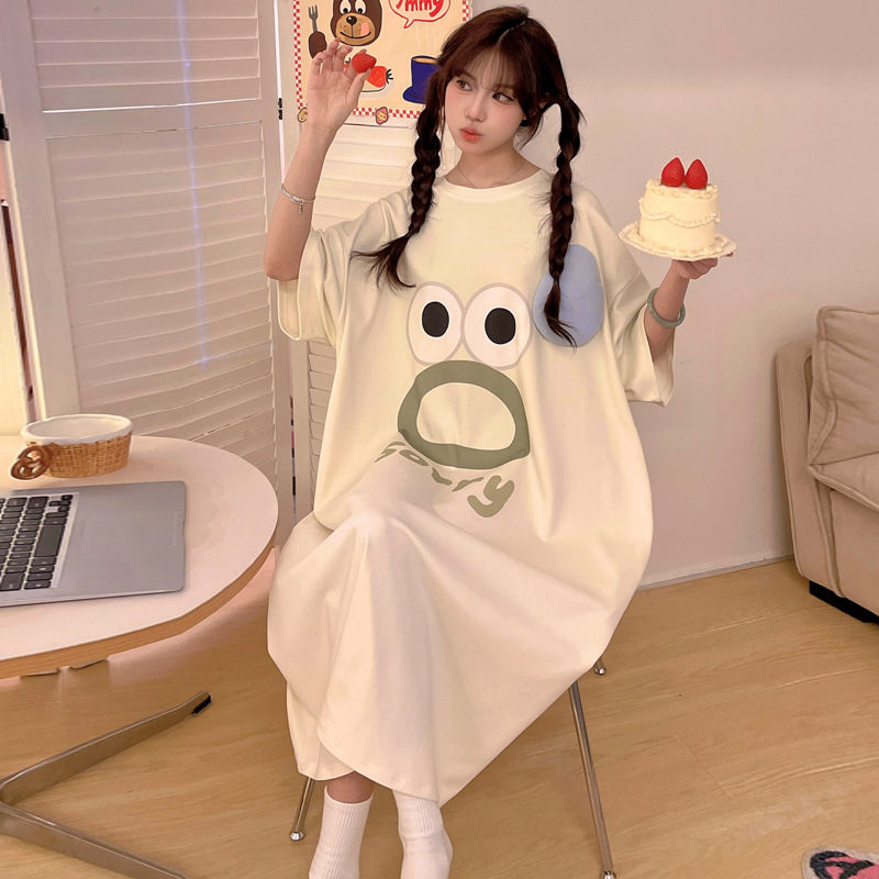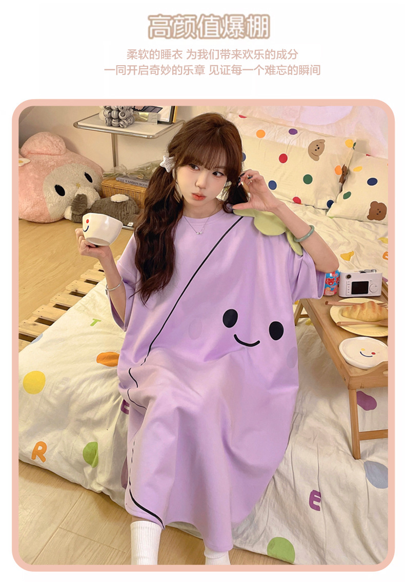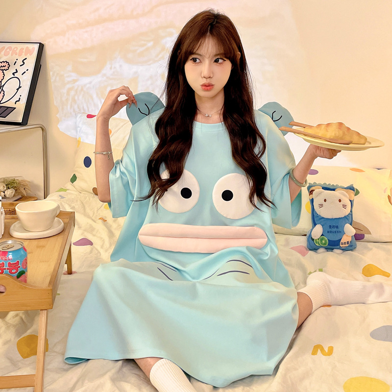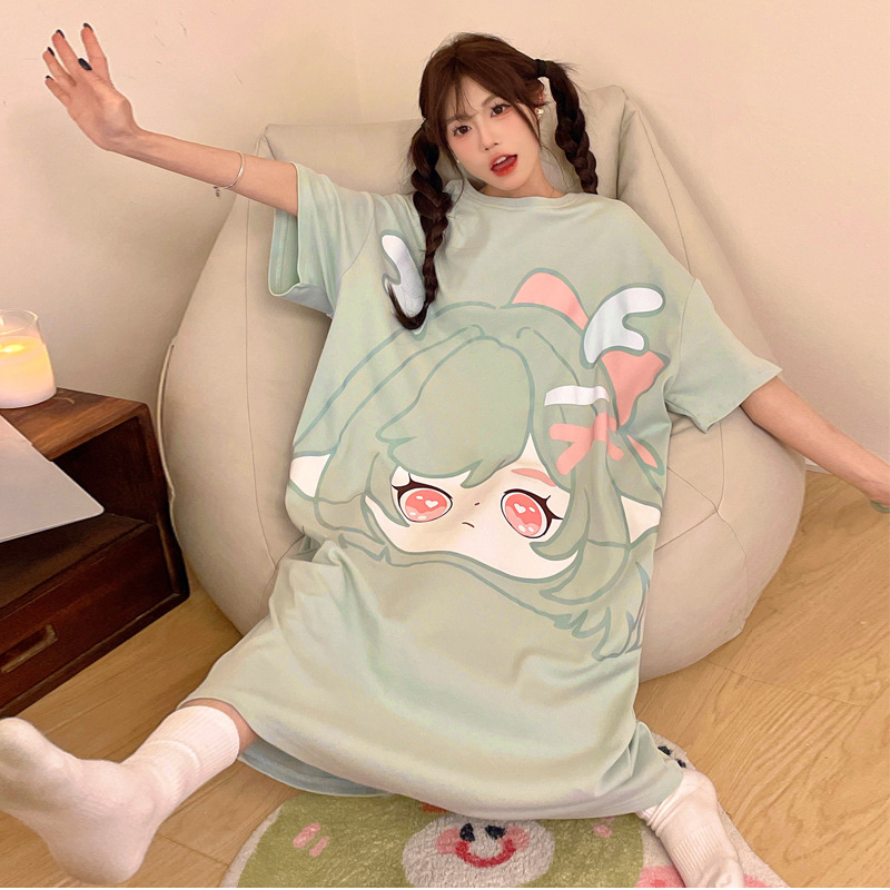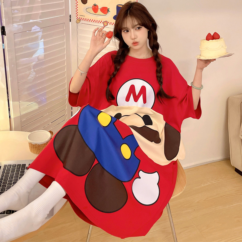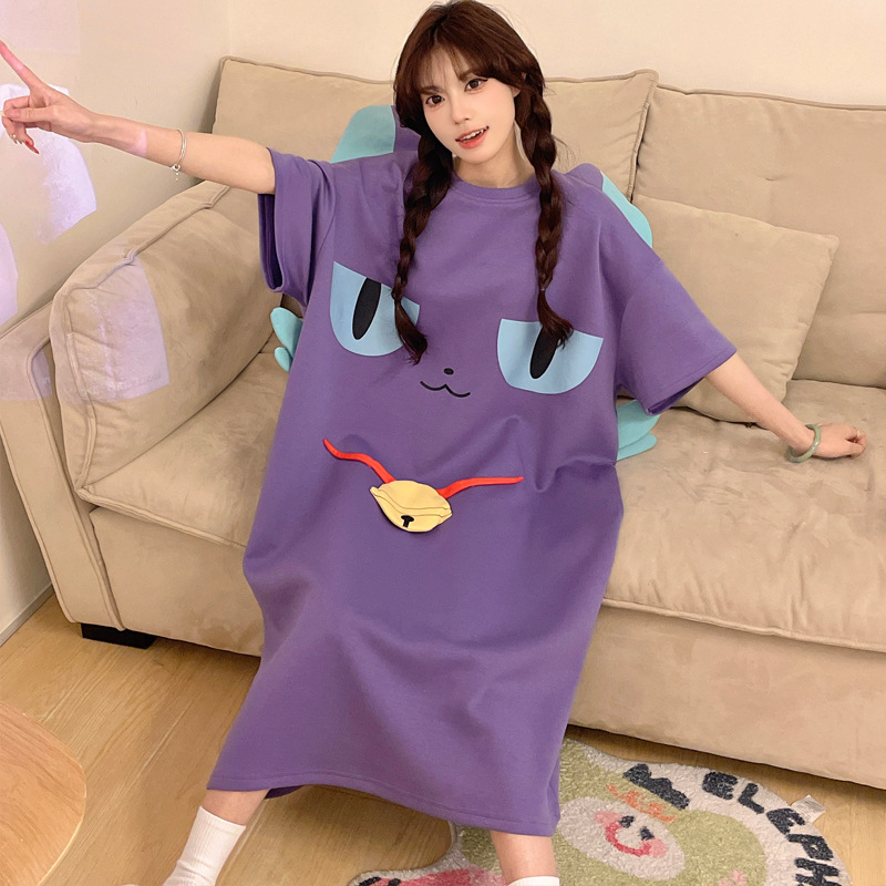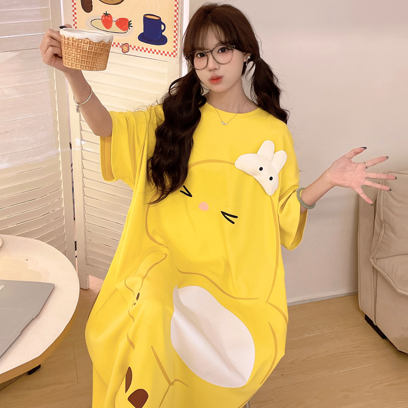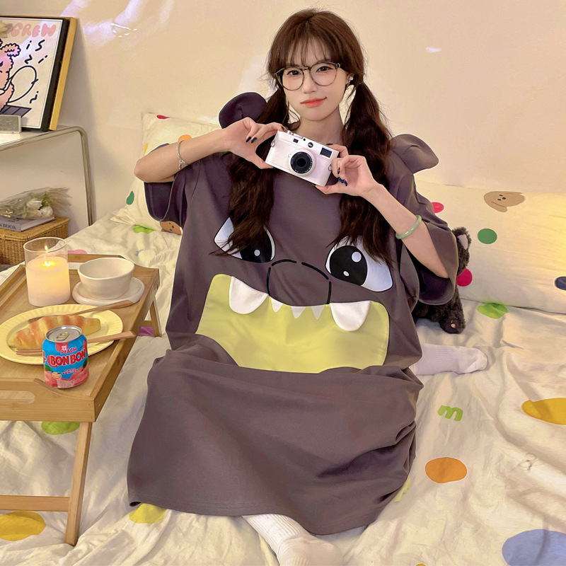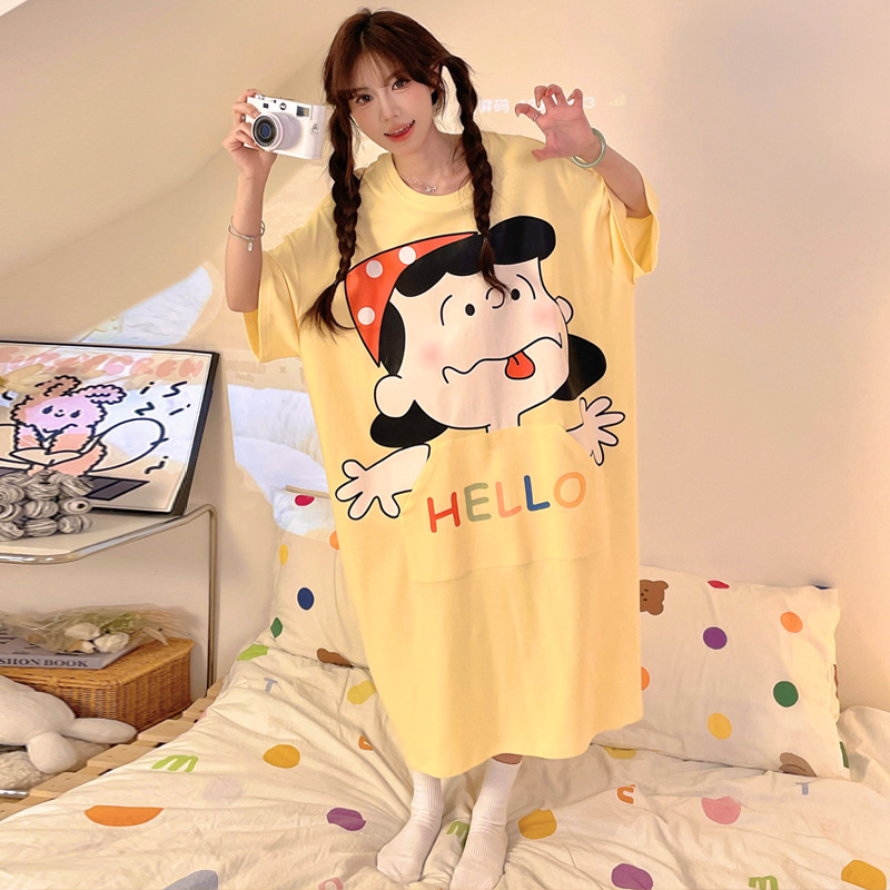 만화 잠옷 여성 여름 반팔 코튼 얇은 귀여운 플러스 사이즈 잠옷 학생들은 홈 옷을 입을 수 있습니다스토어 가기