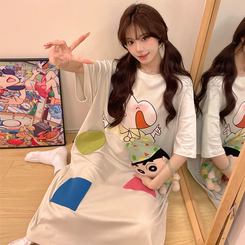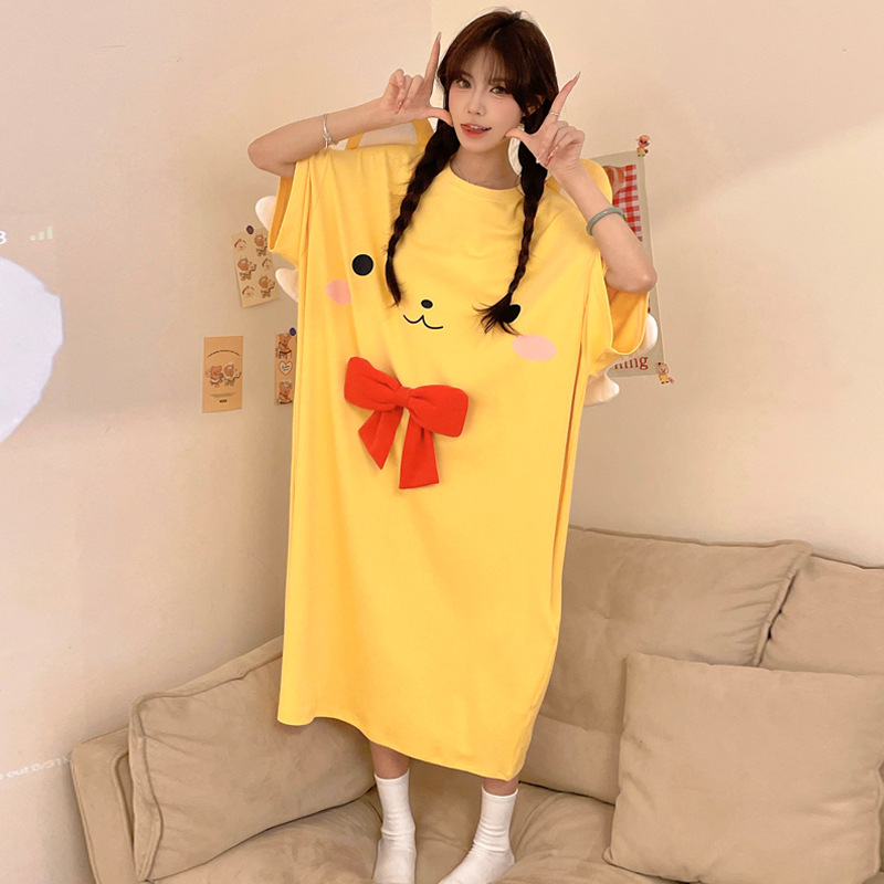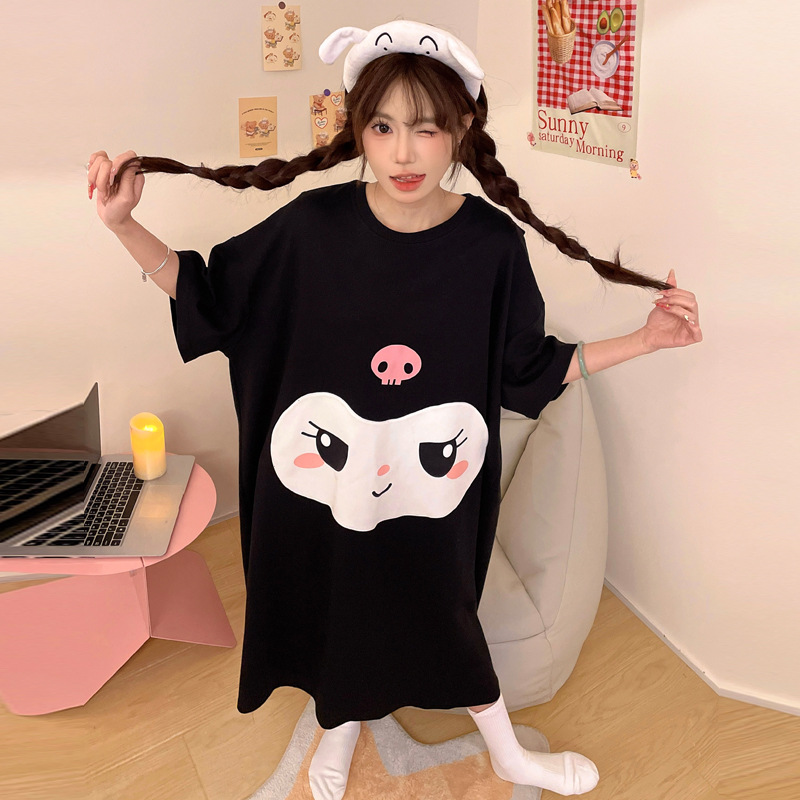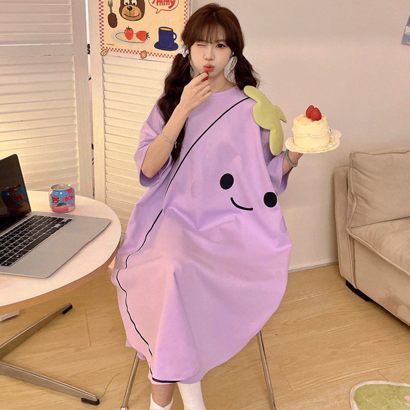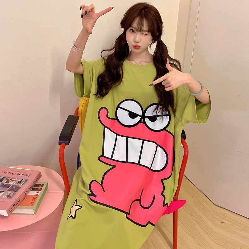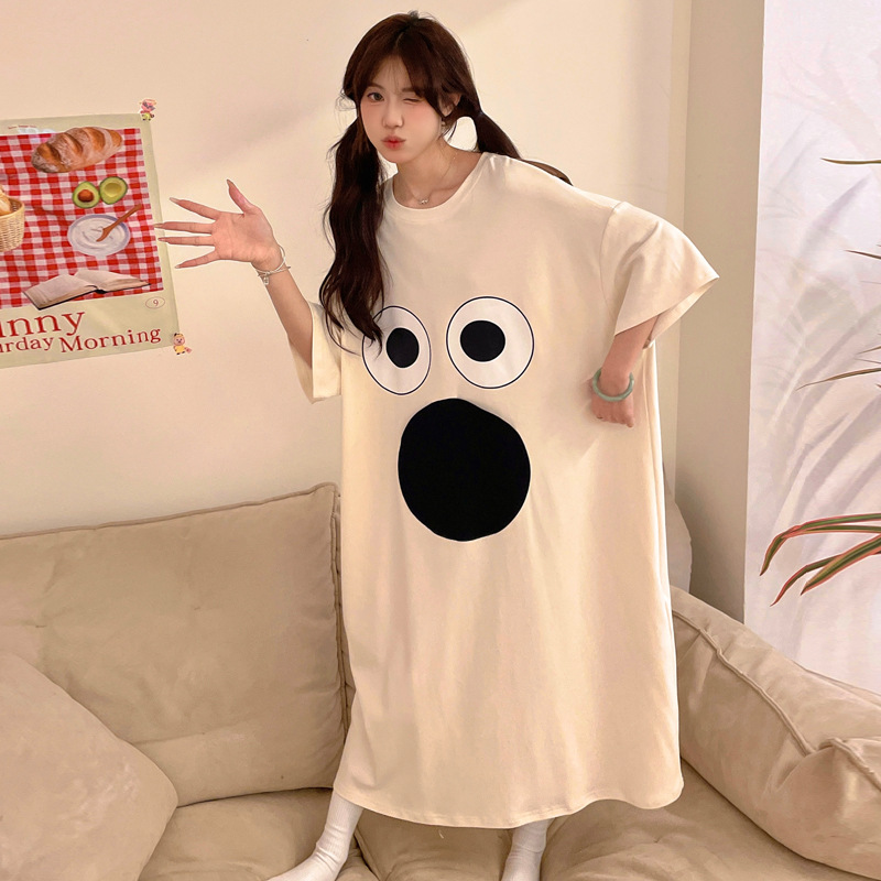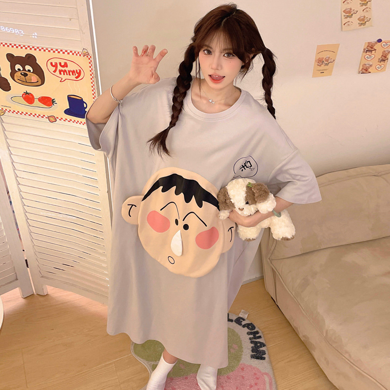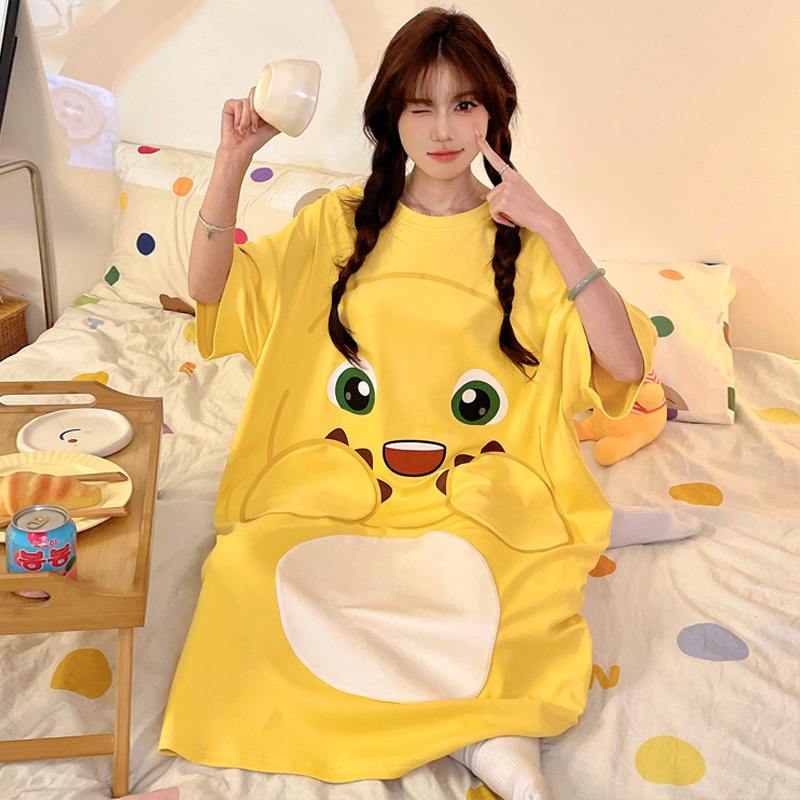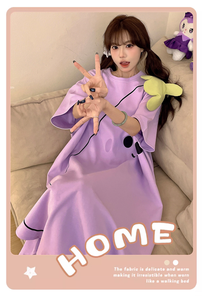 만화 잠옷 여성 여름 반팔 코튼 얇은 귀여운 플러스 사이즈 잠옷 학생들은 홈 옷을 입을 수 있습니다스토어 가기