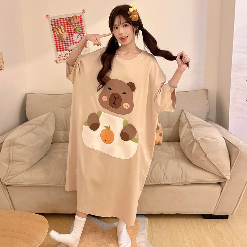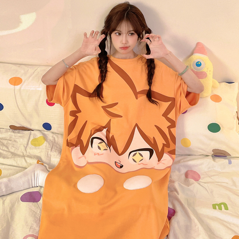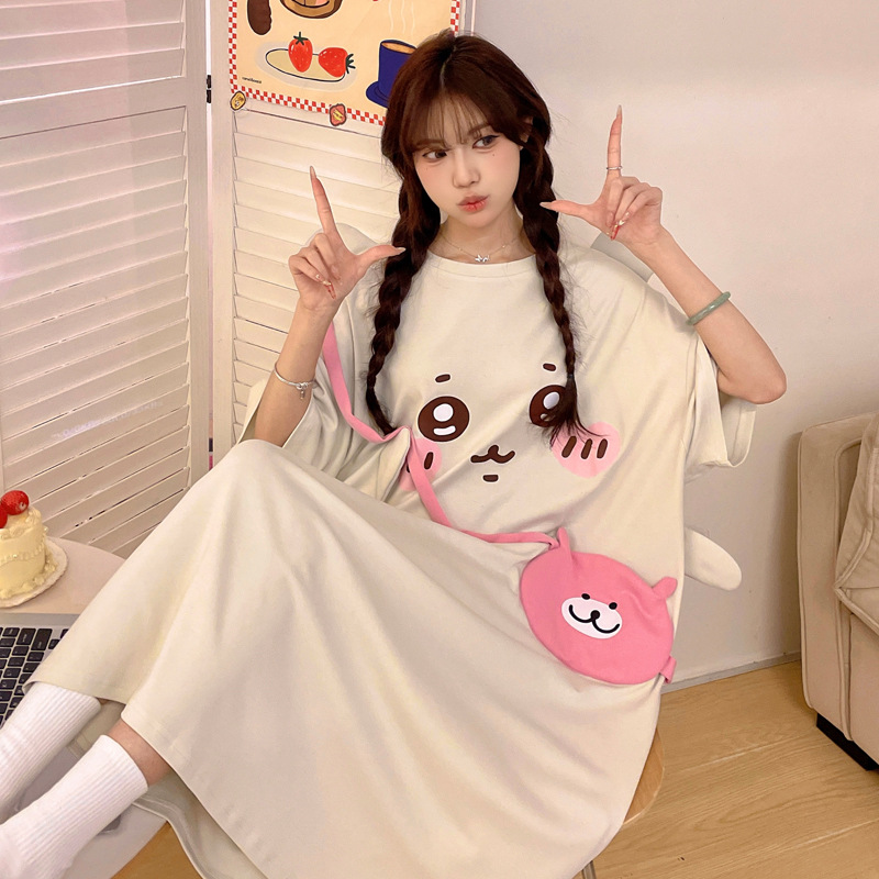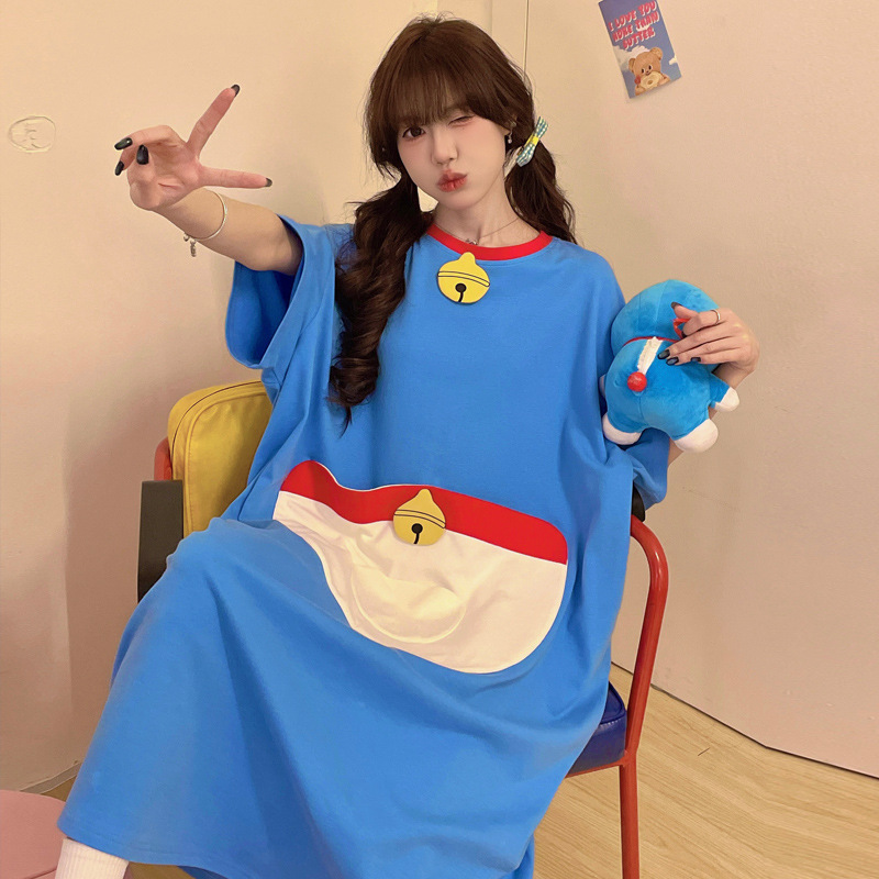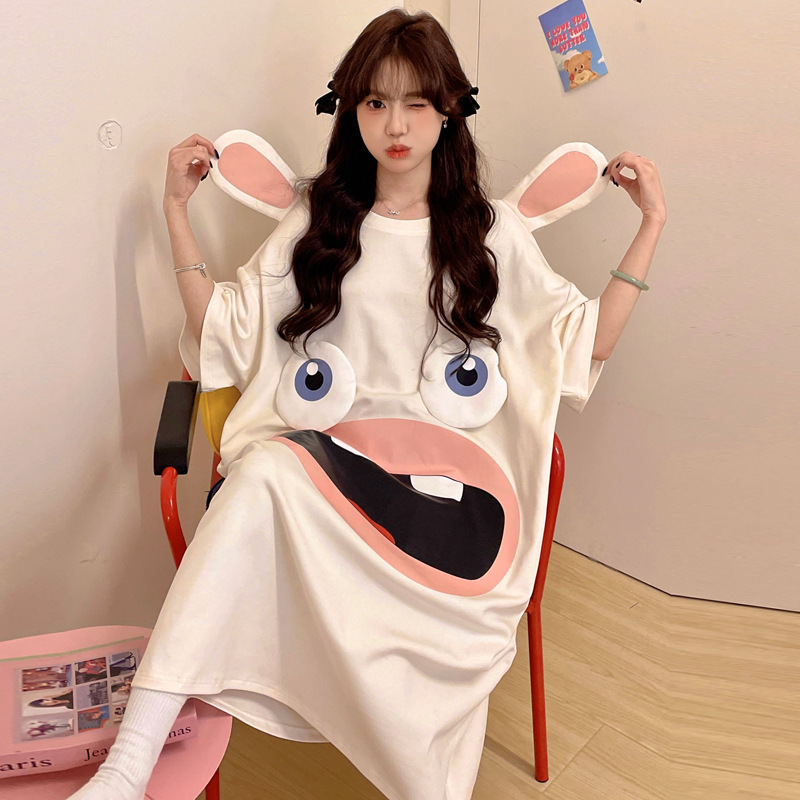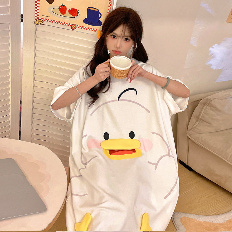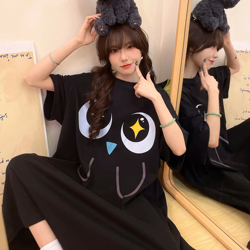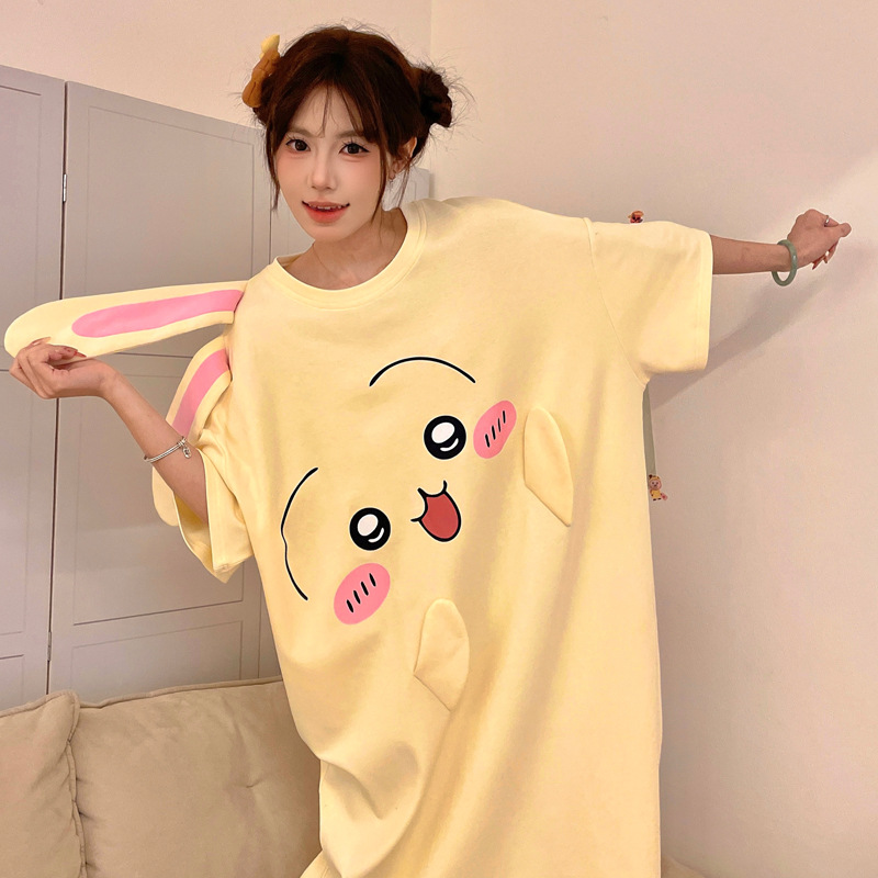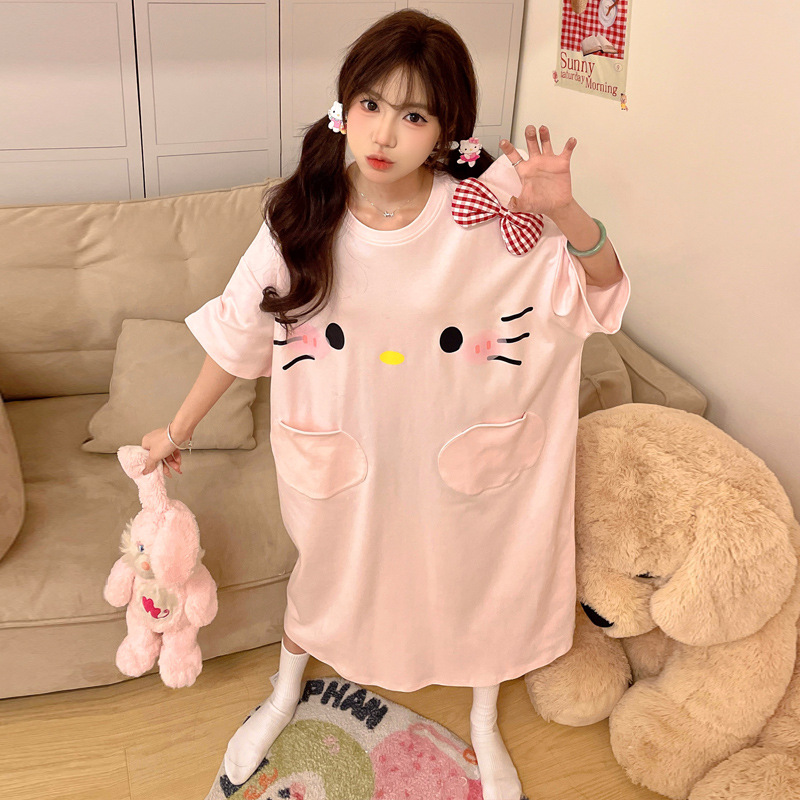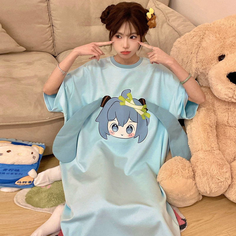 만화 잠옷 여성 여름 반팔 코튼 얇은 귀여운 플러스 사이즈 잠옷 학생들은 홈 옷을 입을 수 있습니다스토어 가기