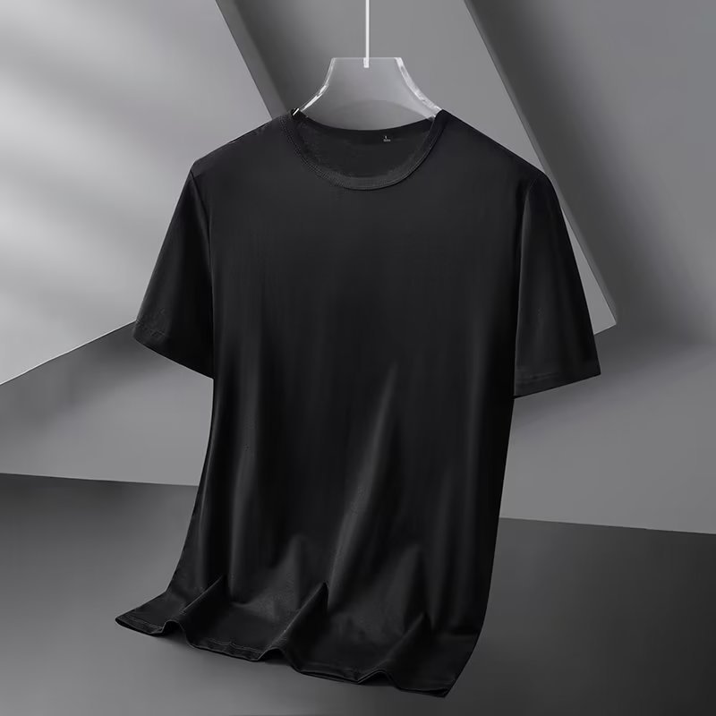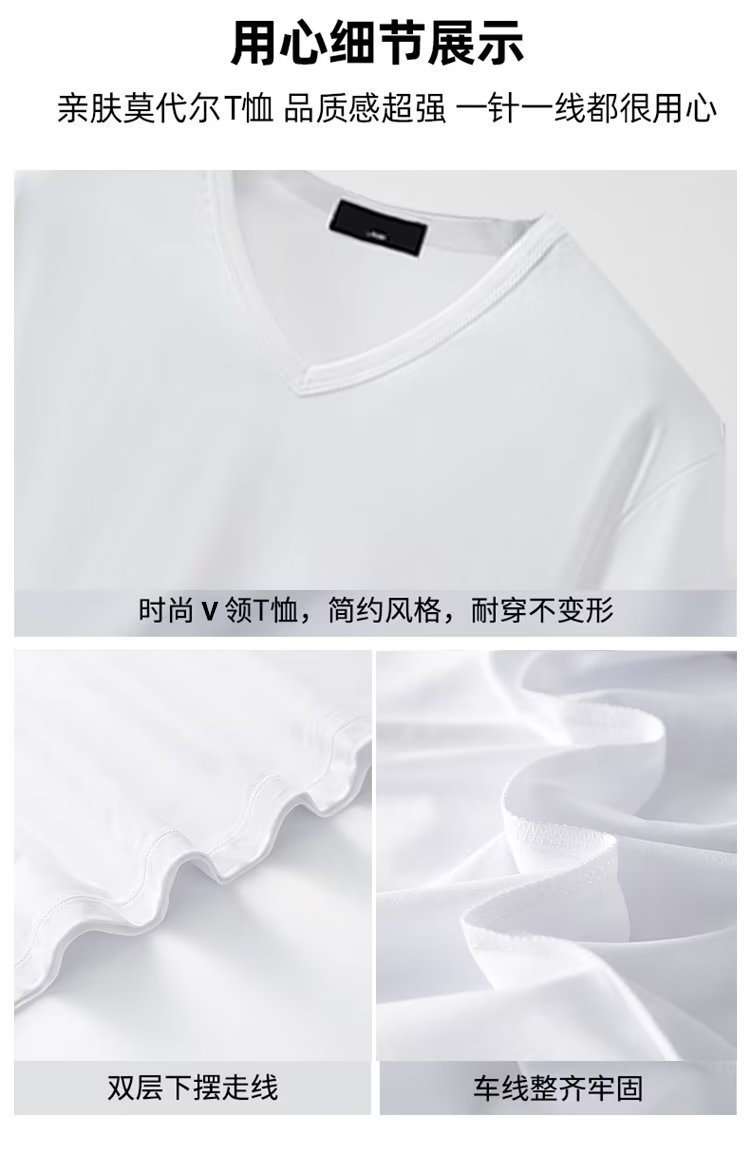 모달 아이스 실크 반팔 티셔츠 남자 2025 년 새 여름베이스 셔츠 컬러 V 넥 티셔츠 옷 반소매 트렌드스토어 가기