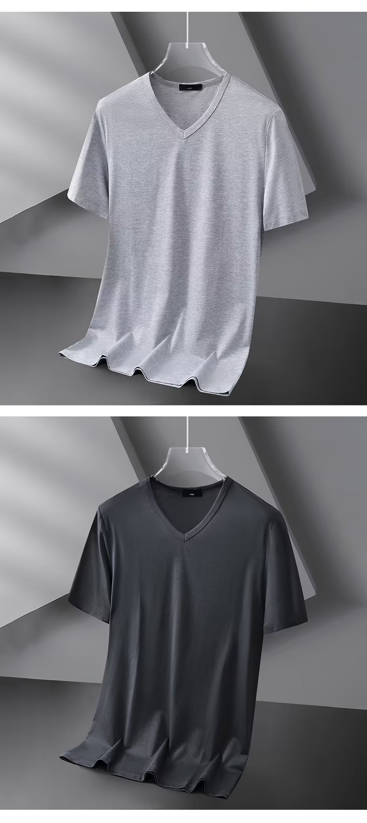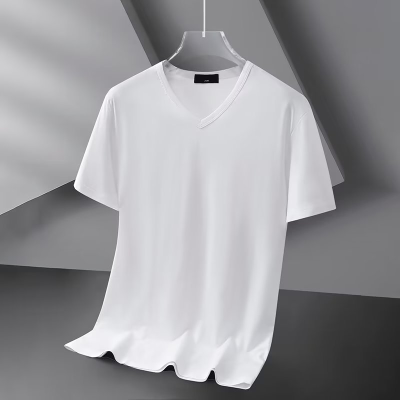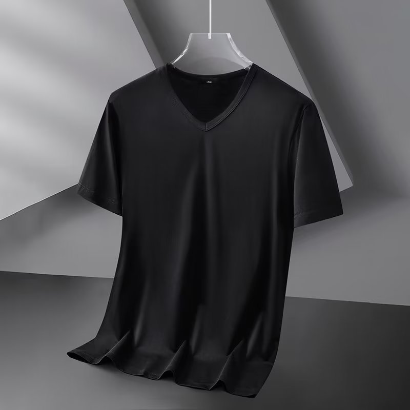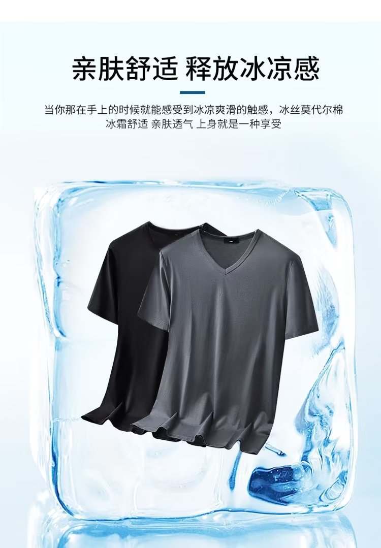 모달 아이스 실크 반팔 티셔츠 남자 2025 년 새 여름베이스 셔츠 컬러 V 넥 티셔츠 옷 반소매 트렌드