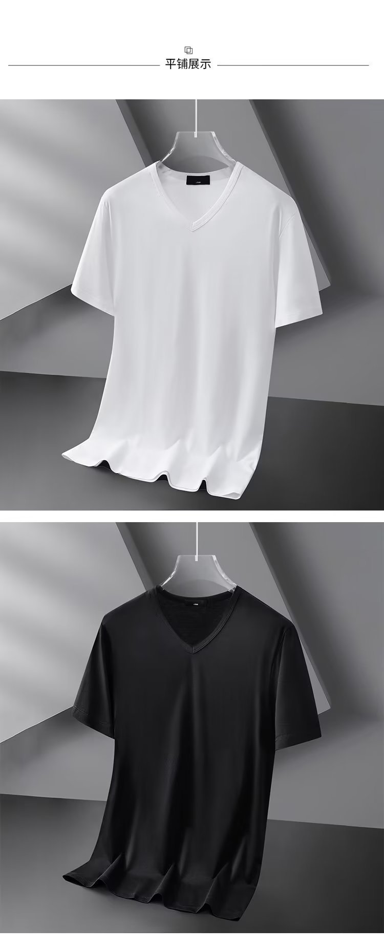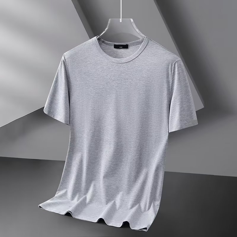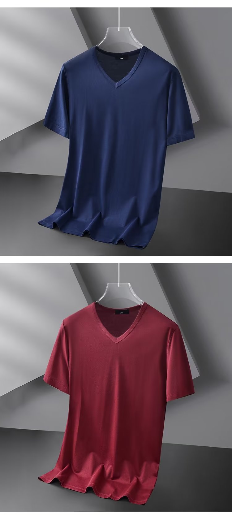 모달 아이스 실크 반팔 티셔츠 남자 2025 년 새 여름베이스 셔츠 컬러 V 넥 티셔츠 옷 반소매 트렌드