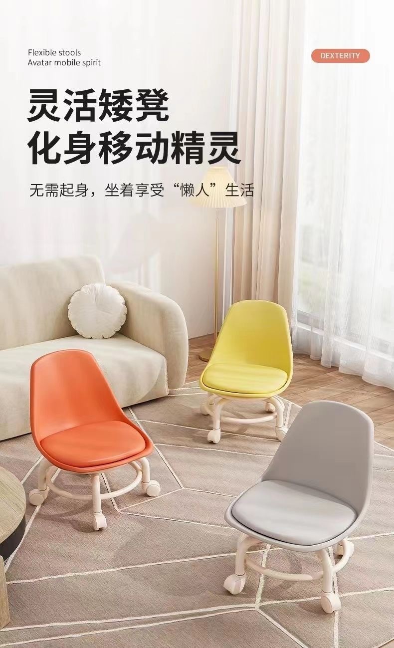 바퀴가 달린 작은 의자 아기의 로타리 의자 움직일 수있는 작은 의자 유니버설 휠 스툴을 가진 아름다운 바느질 롤러 스케이트 낮은 의자스토어 가기