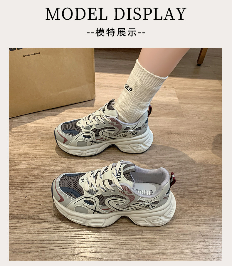 2025 새로운 봄 발 쇼 작은 토레 신발 여성의 두꺼운 밑창 증가 캐주얼 신발 올 매치 통기성 메쉬 운동화스토어 가기