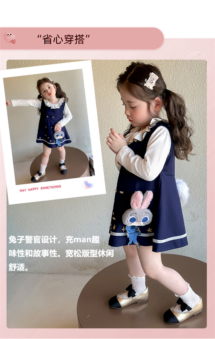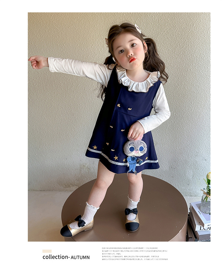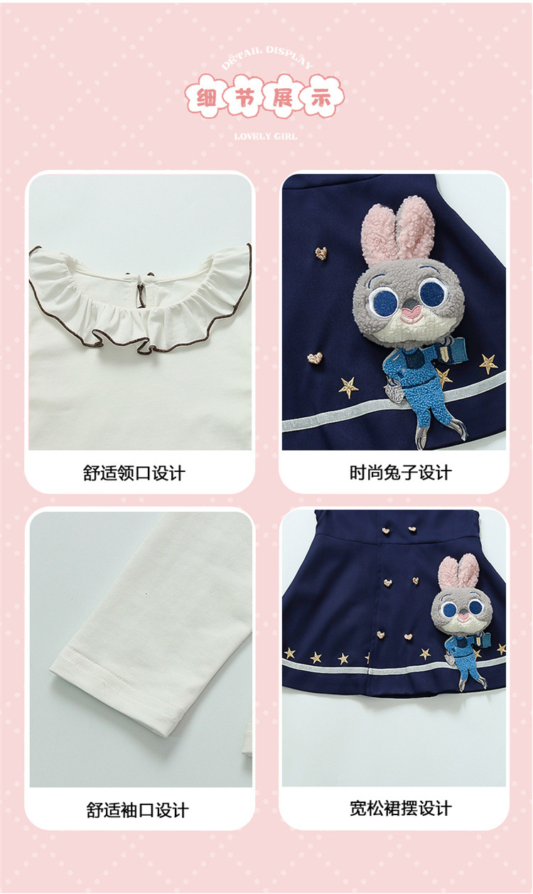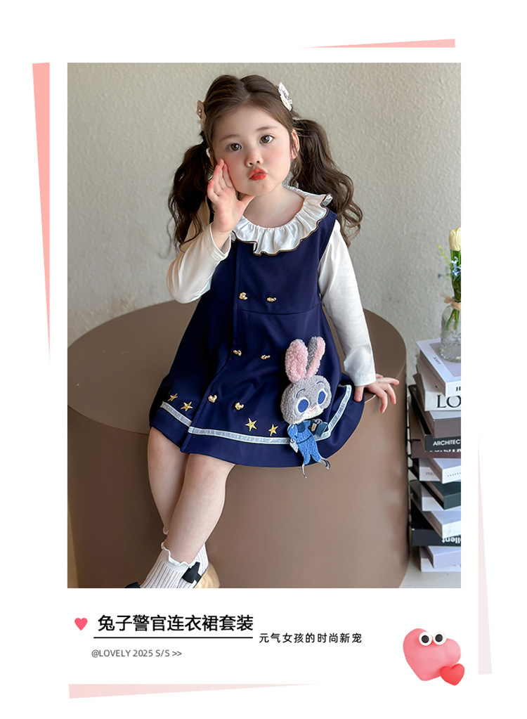 소녀 원피스 세트 봄 원피스 주디 토끼 경찰관 어린 소녀 아카데미 스타일 봄과 가을 어린이 치마 투피스 세트