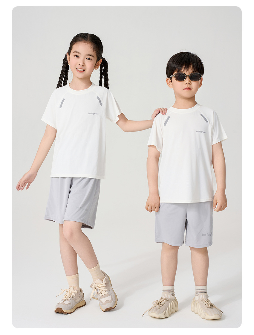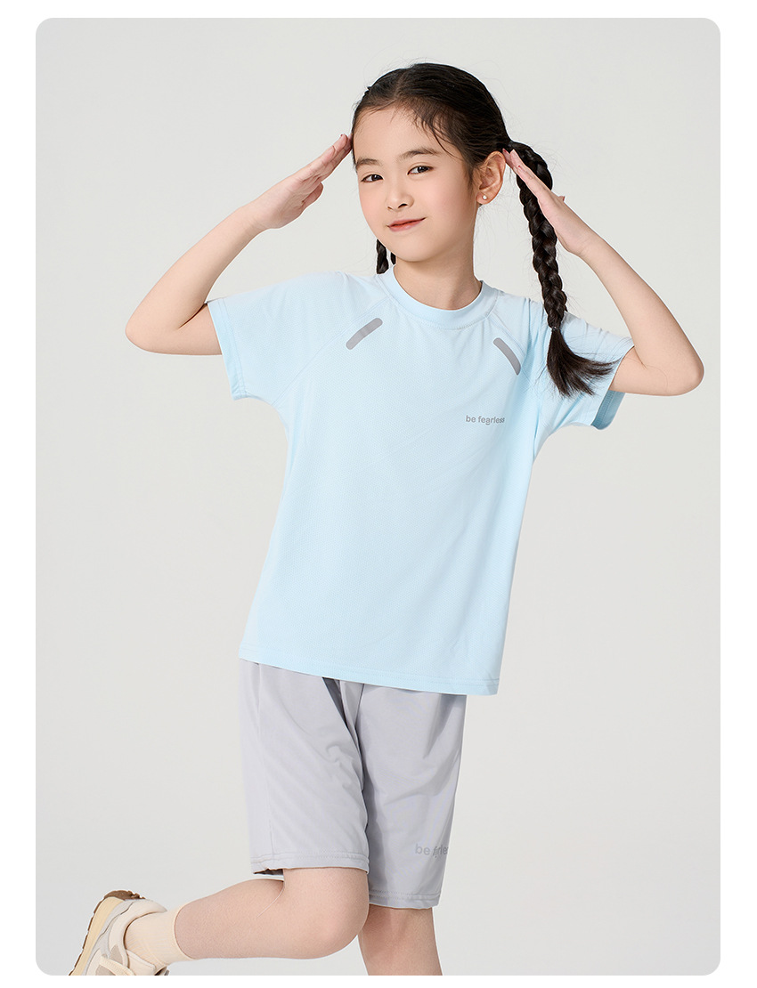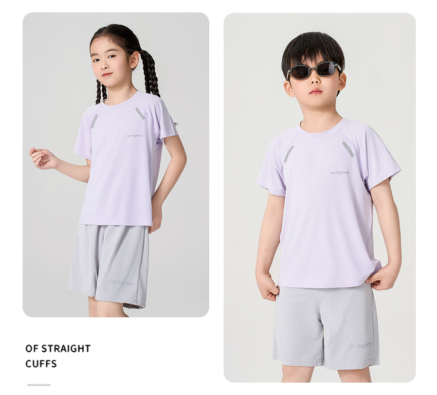 어린이 빠른 건조 스포츠 반팔 세트 여름 소년과 소녀 캐주얼 얇은 아이스 실크 메쉬 티셔츠 반바지 세트스토어 가기