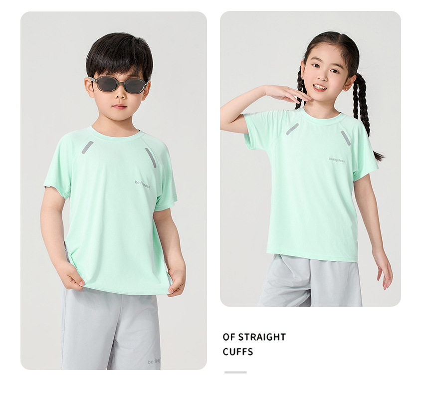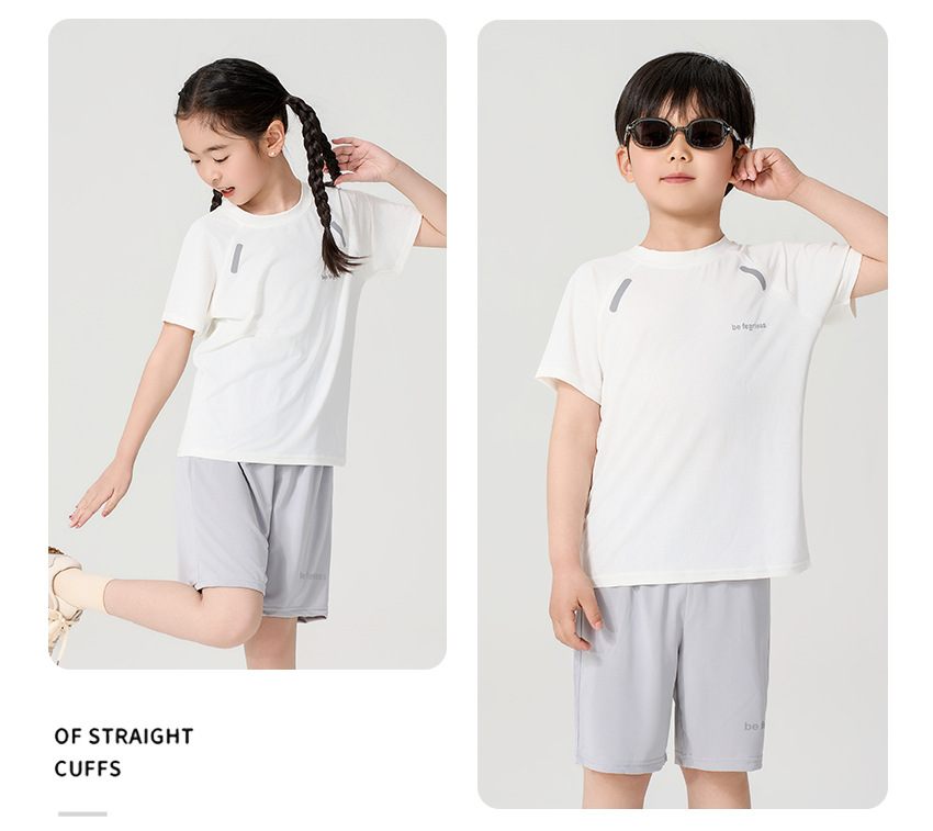 어린이 빠른 건조 스포츠 반팔 세트 여름 소년과 소녀 캐주얼 얇은 아이스 실크 메쉬 티셔츠 반바지 세트