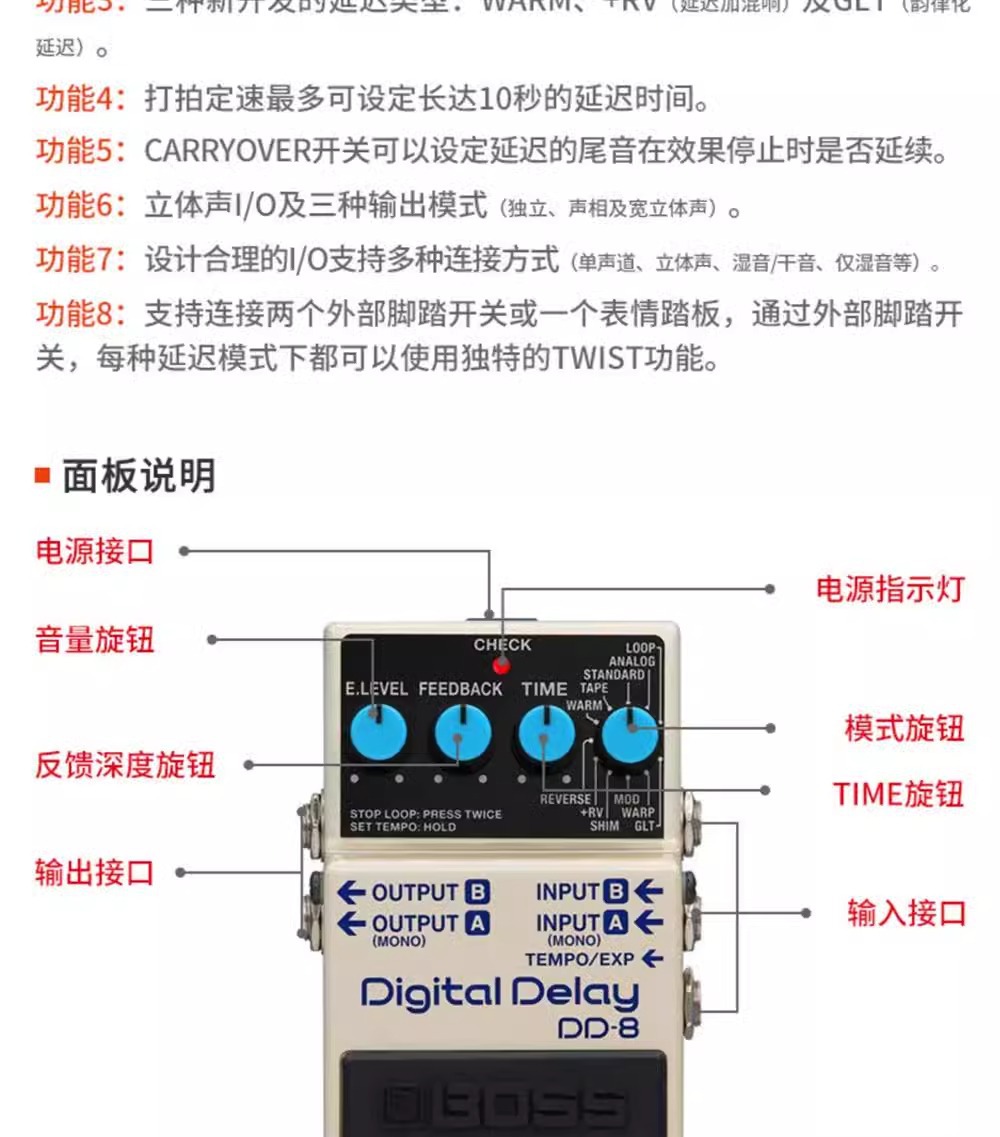 보스 싱글 블록 이펙터 RV-6 DM-2W DD8 지연 dd500 일렉트릭 기타베이스 디지털 TE-2 리버브