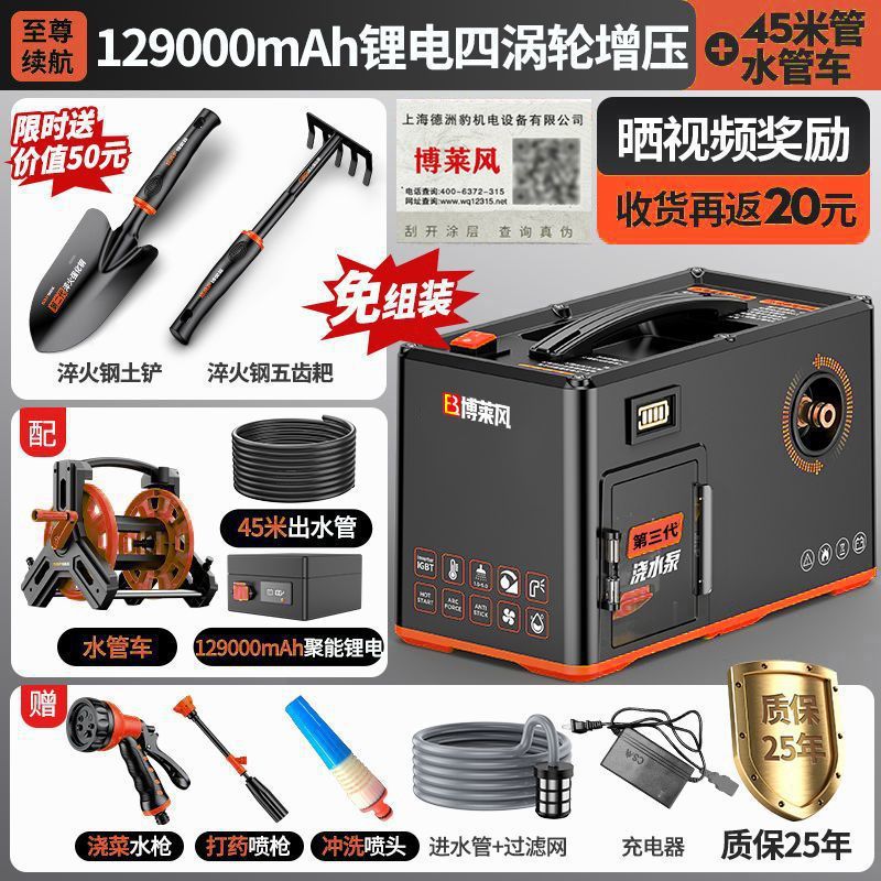 • [최고 배터리 수명] 99000mAh - [리튬 배터리 4개 터보차저] + 25m개의 수도관
