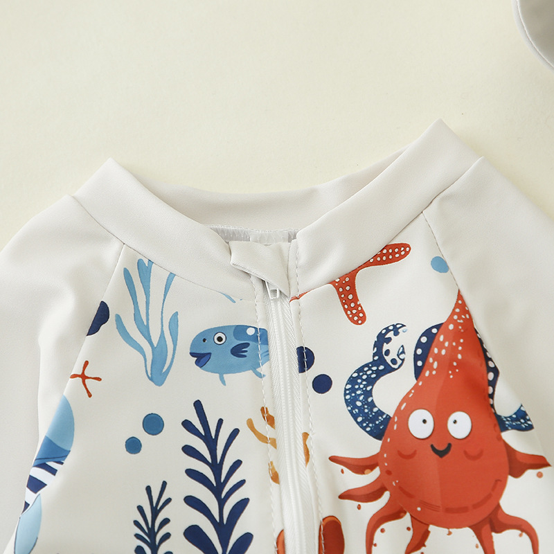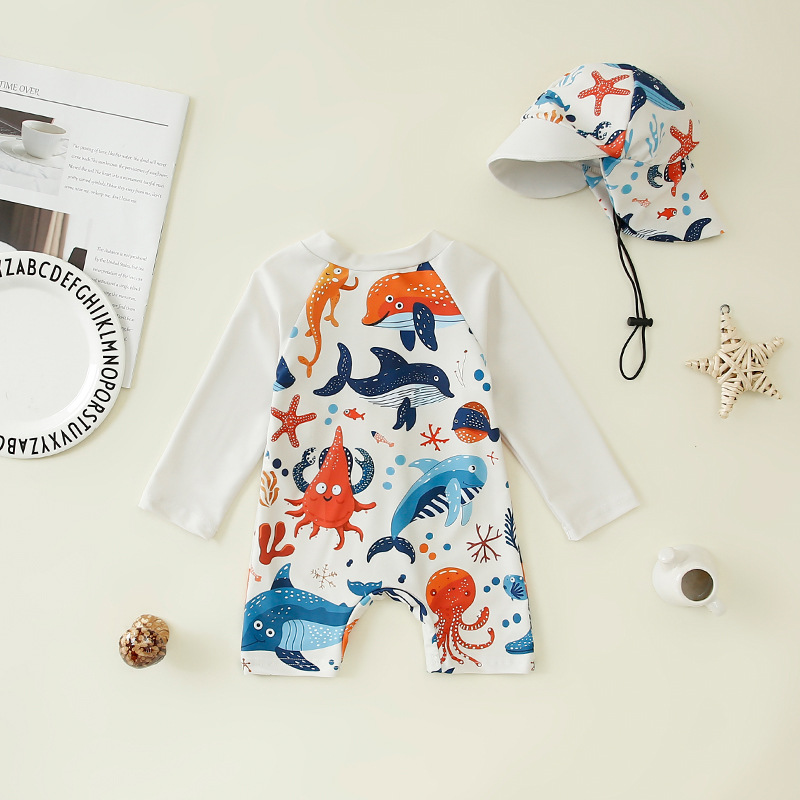 국경 간 아동복 소년 바다 테마 전체 인쇄 원피스 수영복 소년 아기 반 오픈 원피스 수영복 어린이 수영복 0-