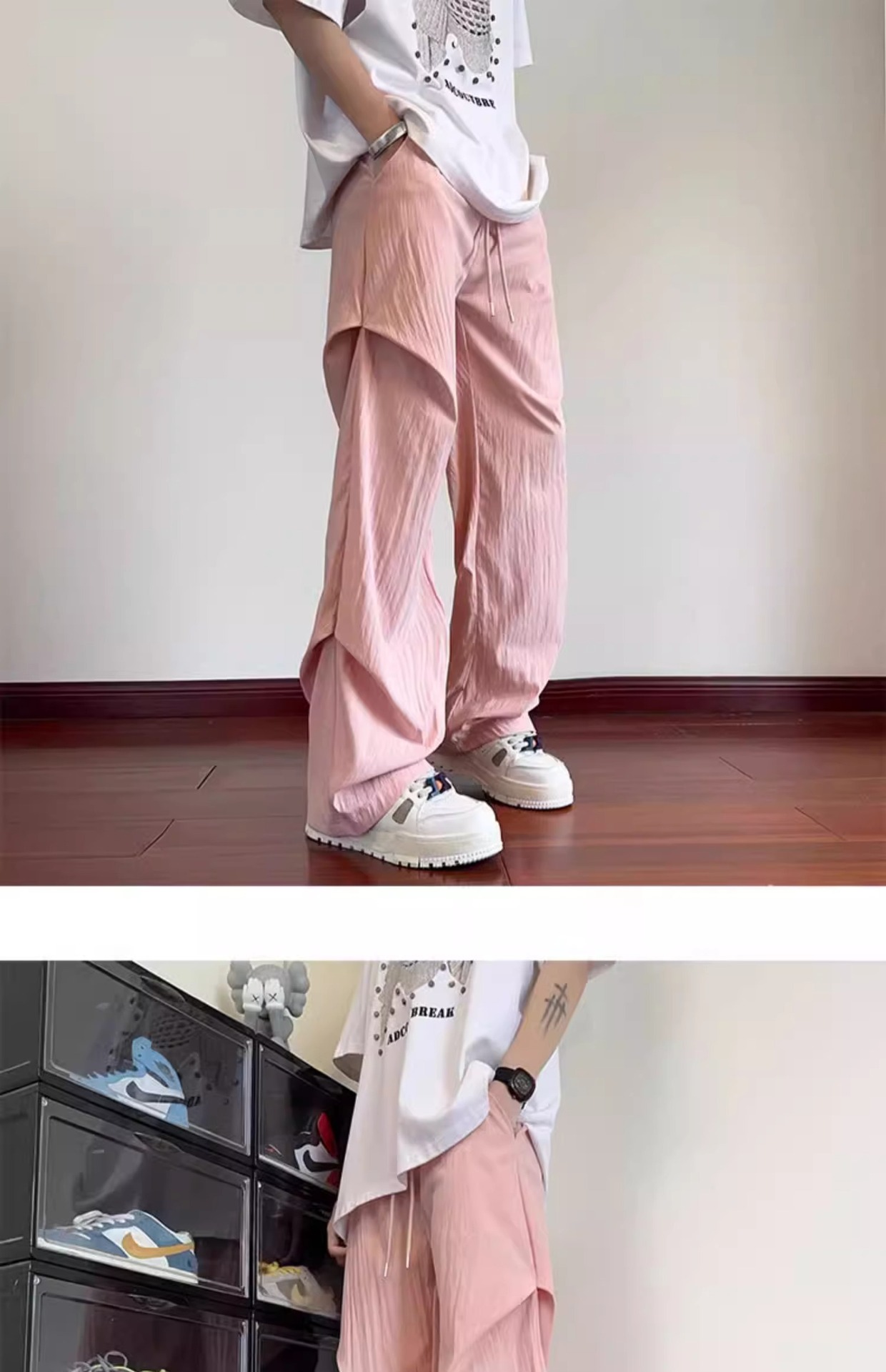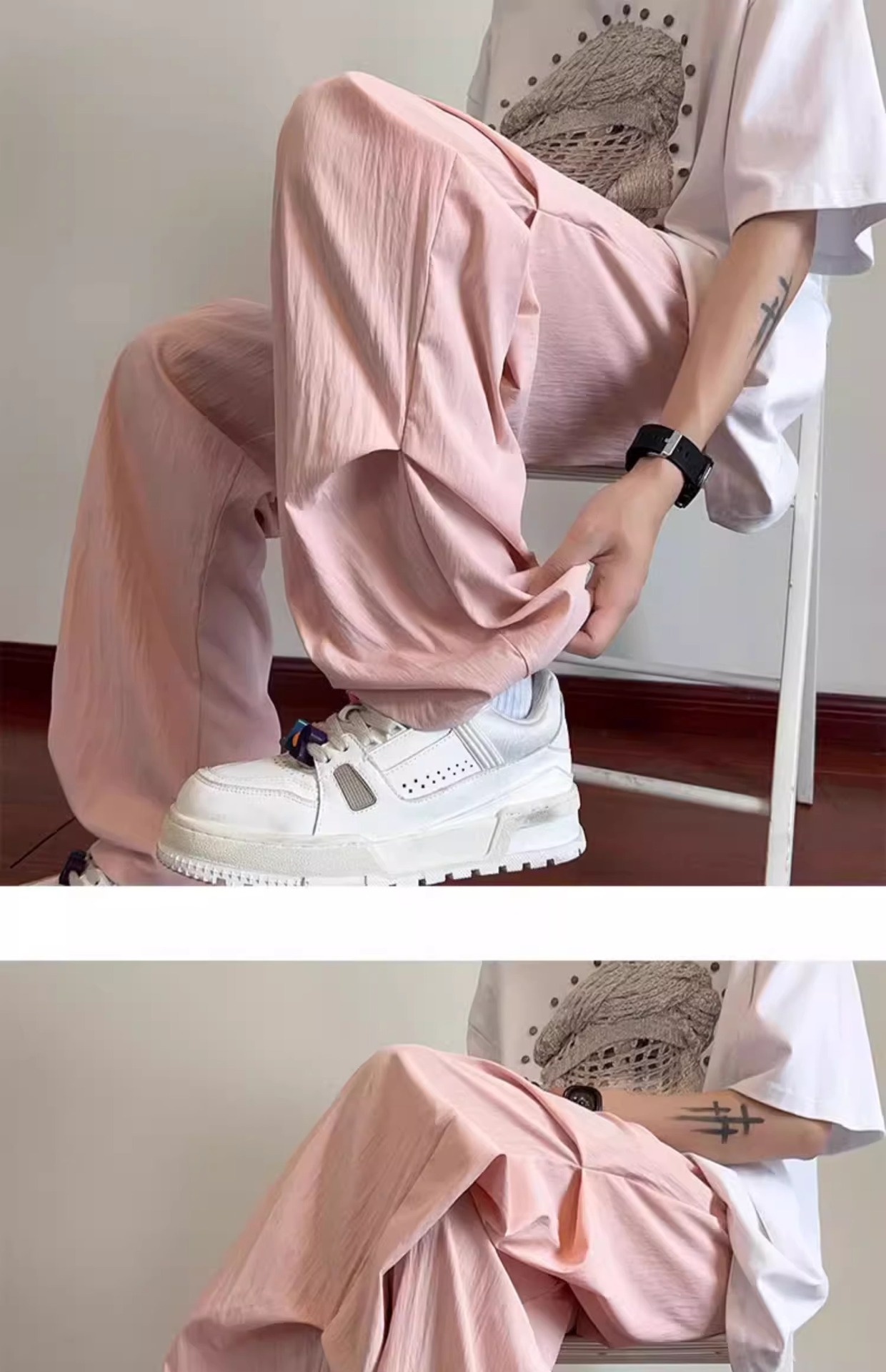 NASA 바지 남자 봄과 가을 2025 새로운 스타일 땀 바지 느슨한 넓은 다리 바지 청소년 스포츠 캐주얼 긴 바지