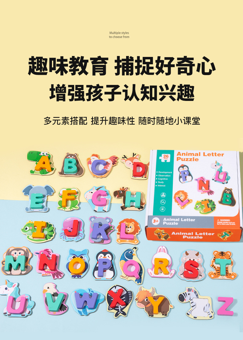 어린이 26 수도 영어 편지 건물 블록 철자 단어 아기의 조기 교육 및 지능 매칭 동물 퍼즐 장난감