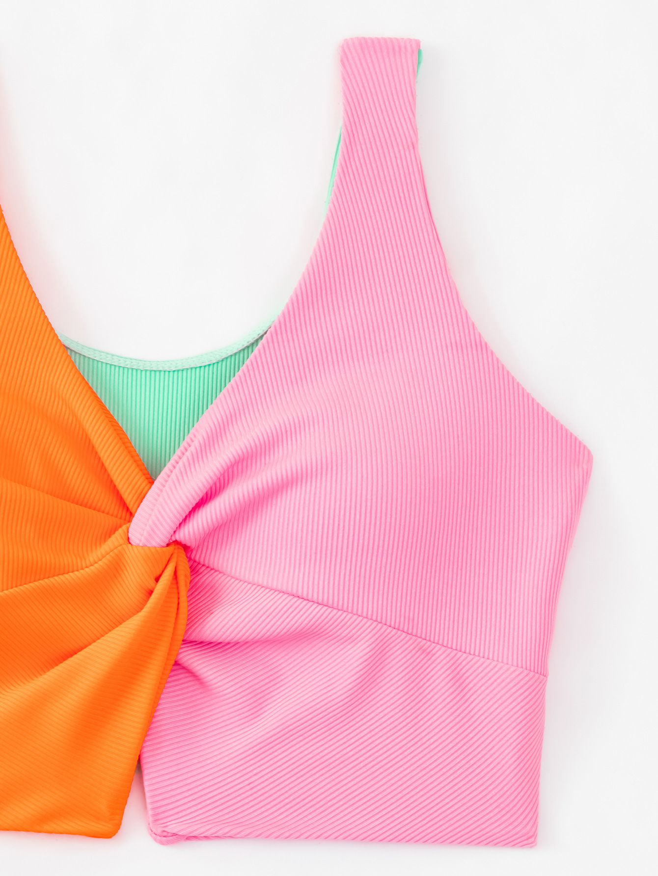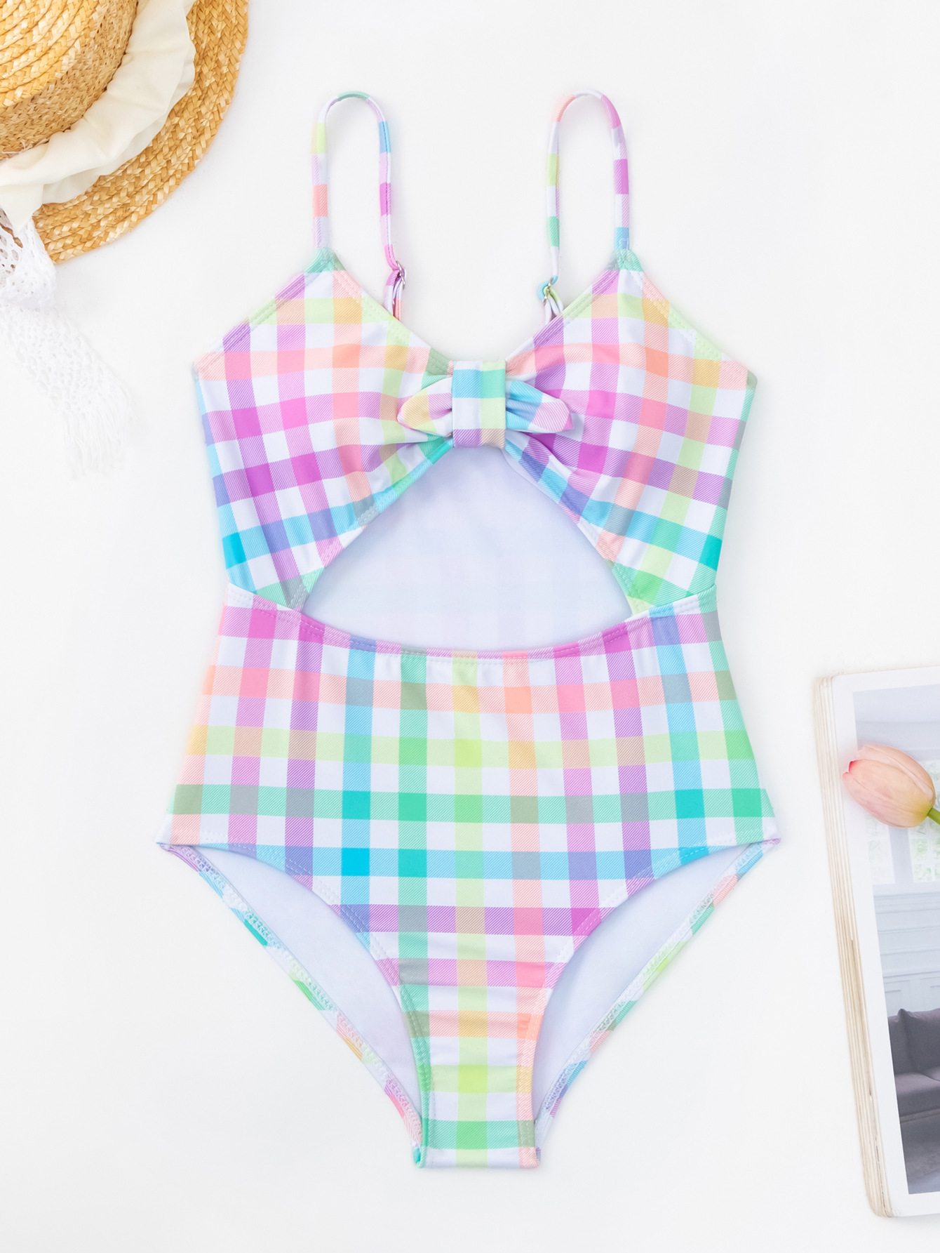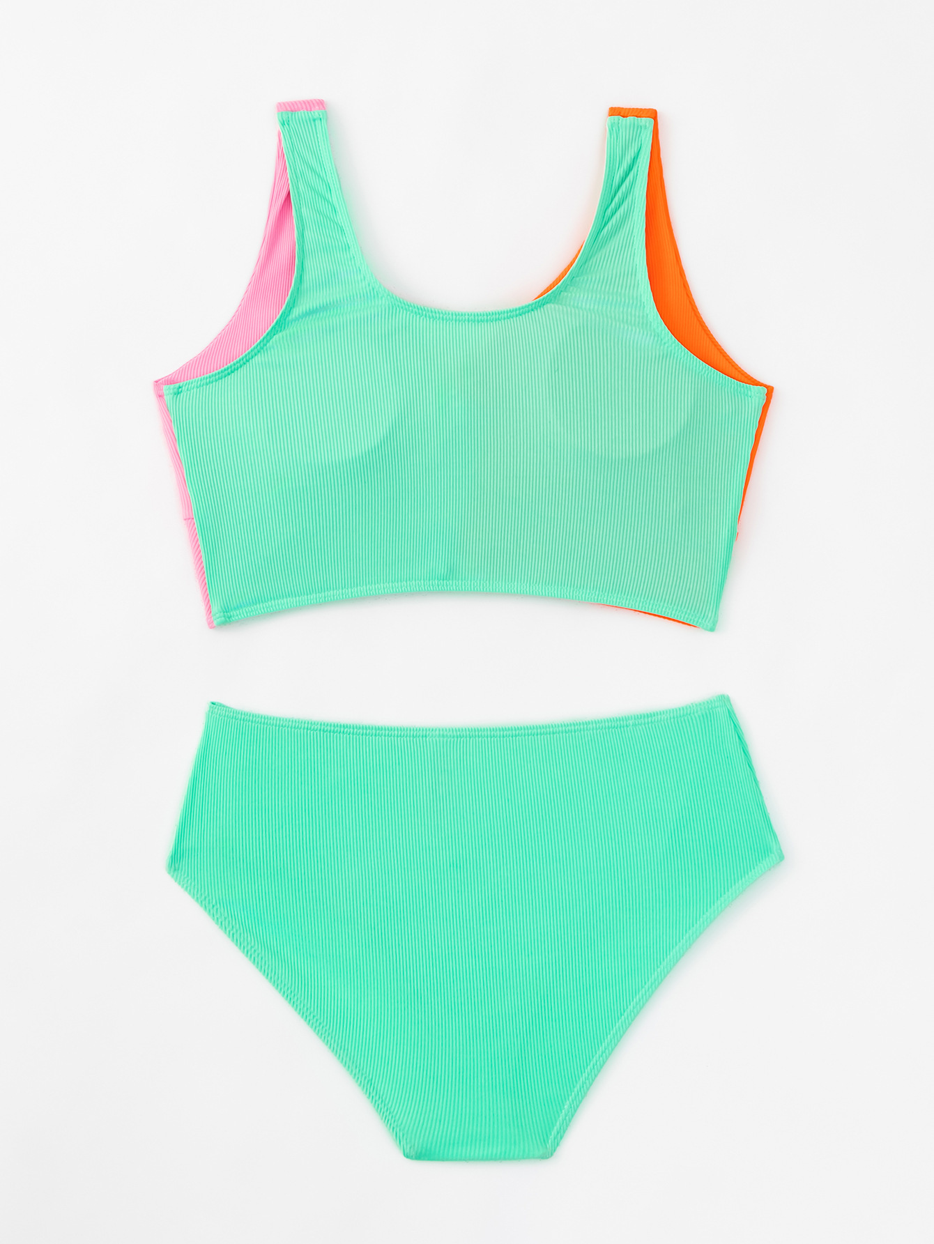 24 새로운 어린이 수영복 여성의 작은 신선한 타이-염료 분할 4 조각 세트 스커트 유럽과 미국 비키니 큰 어린이