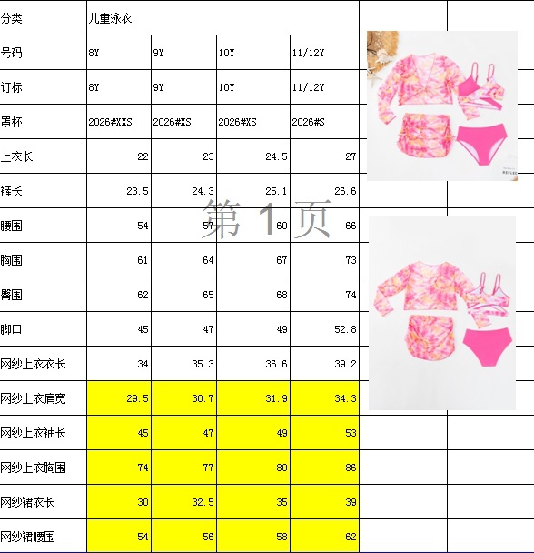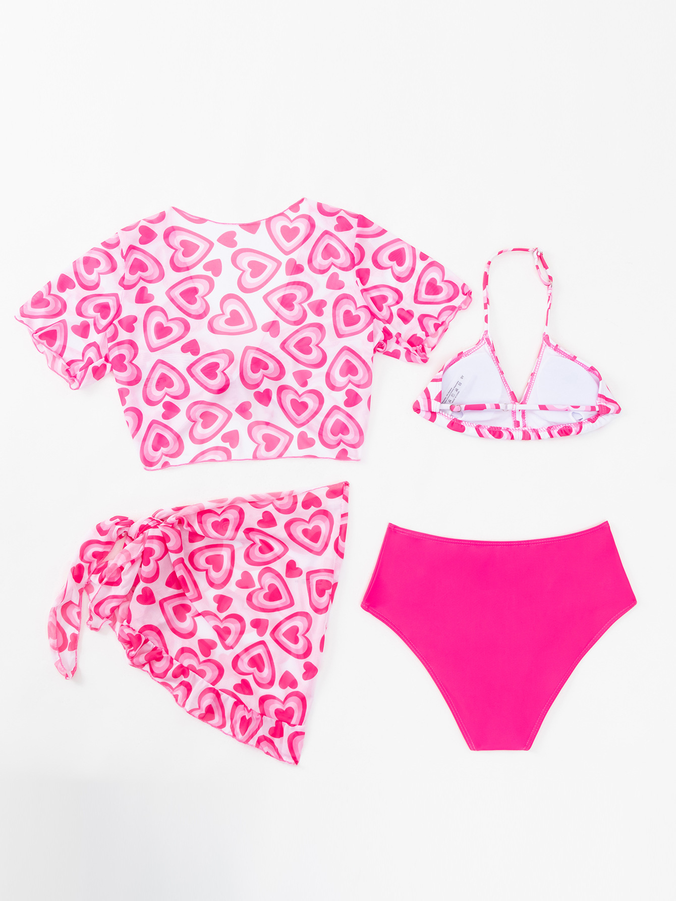 24 새로운 어린이 수영복 여성의 작은 신선한 타이-염료 분할 4 조각 세트 스커트 유럽과 미국 비키니 큰 어린이스토어 가기