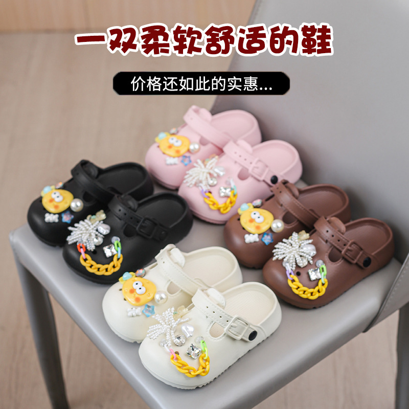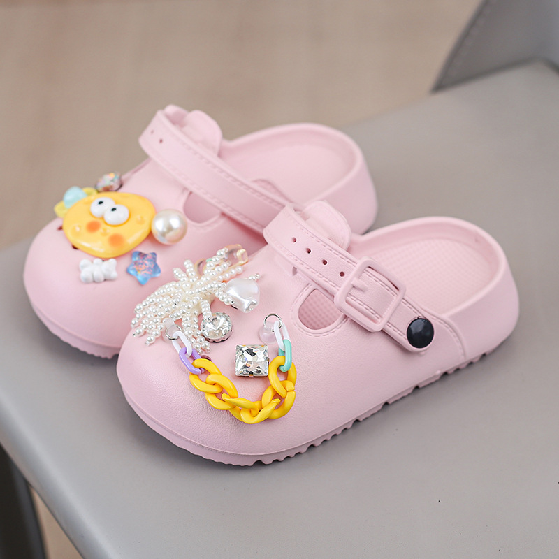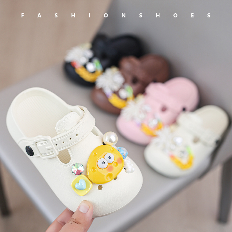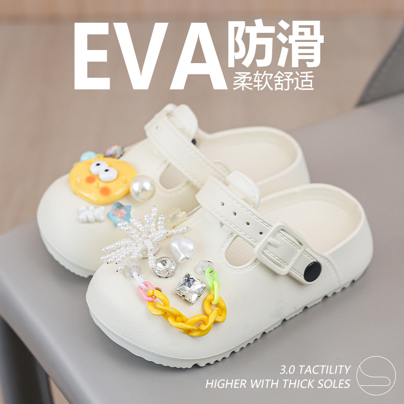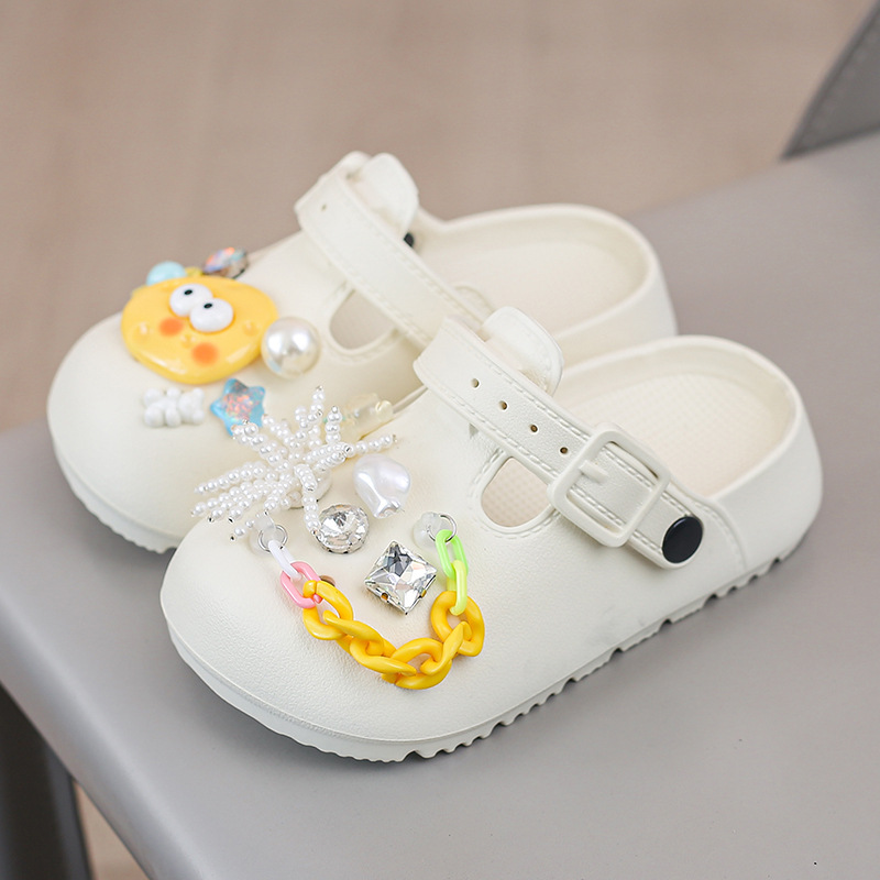 봄 2025 하이 퀄리티 다이아몬드 타원형 금속 아크릴 체인 버클 창조적 인 컬러 아크릴 패션 슬리퍼스토어 가기