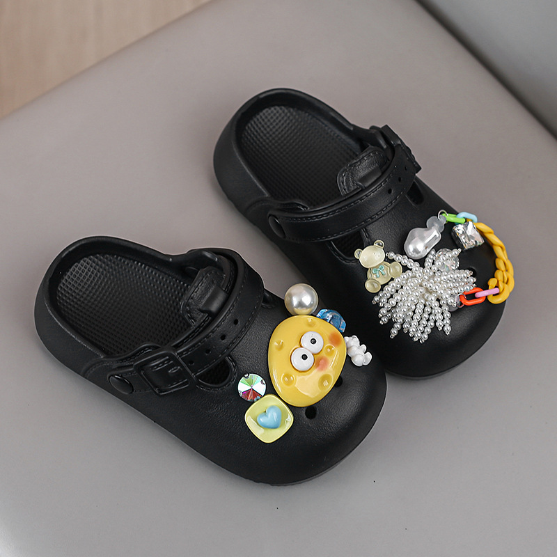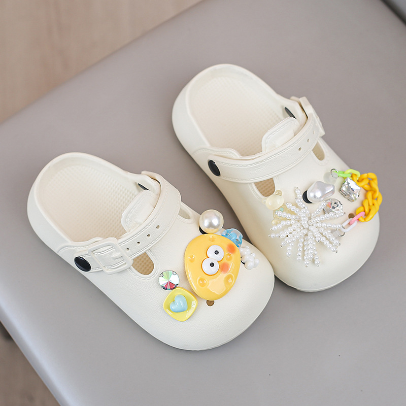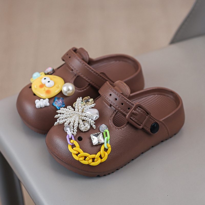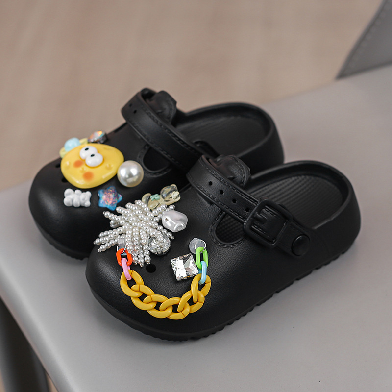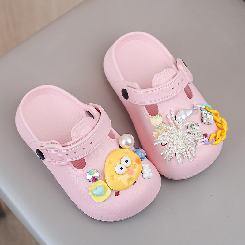 봄 2025 하이 퀄리티 다이아몬드 타원형 금속 아크릴 체인 버클 창조적 인 컬러 아크릴 패션 슬리퍼스토어 가기