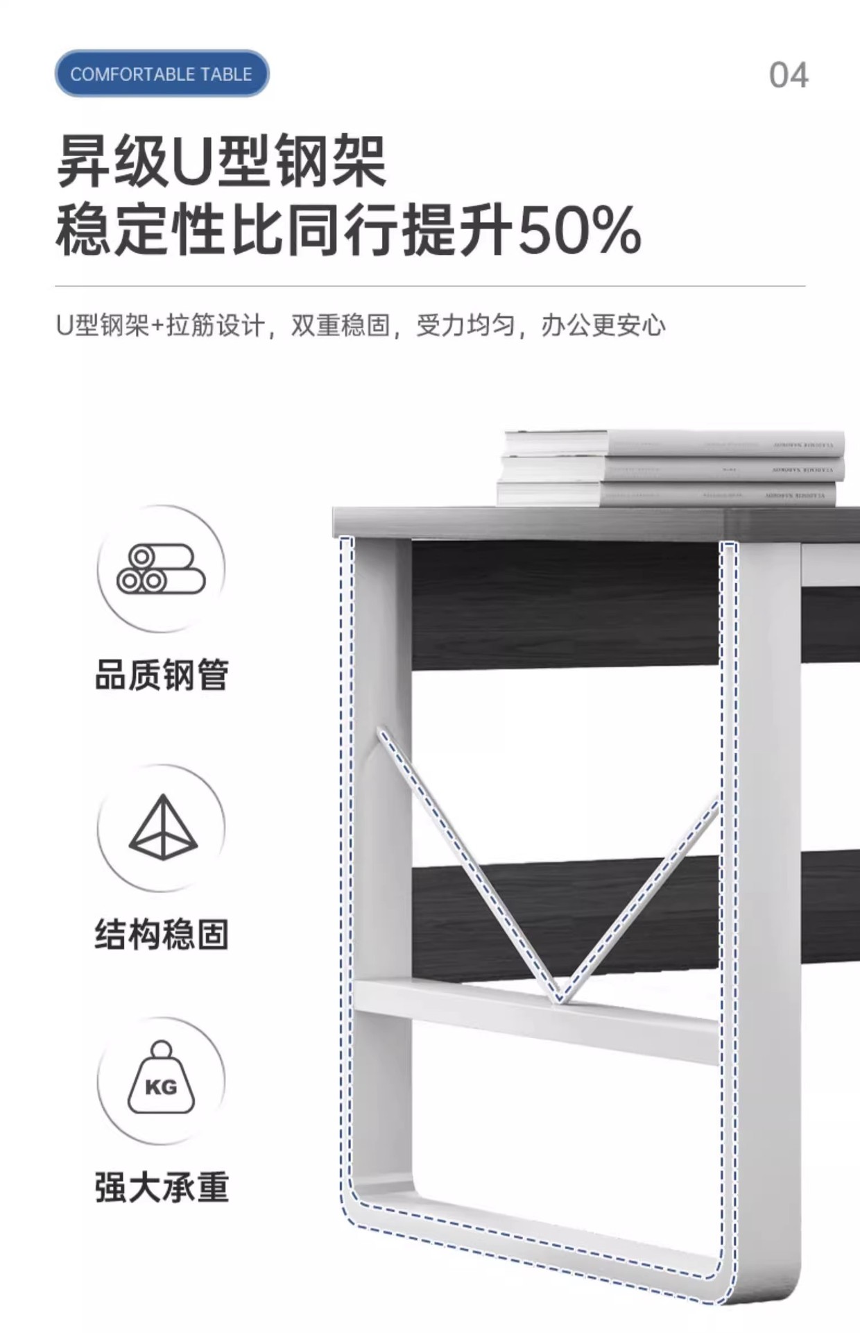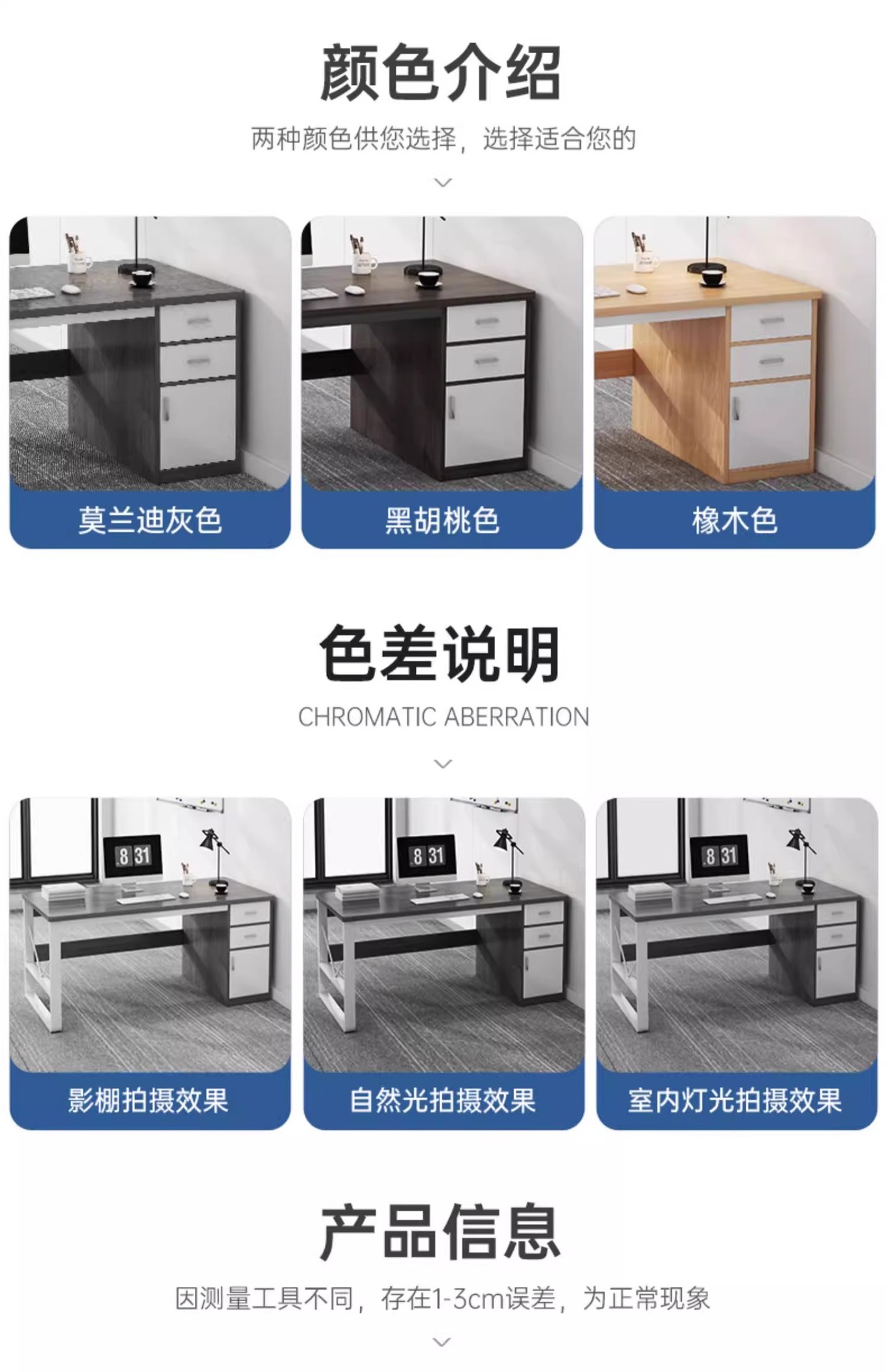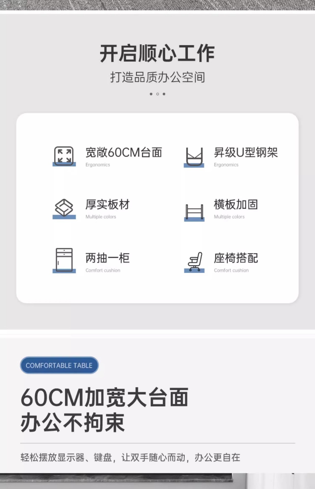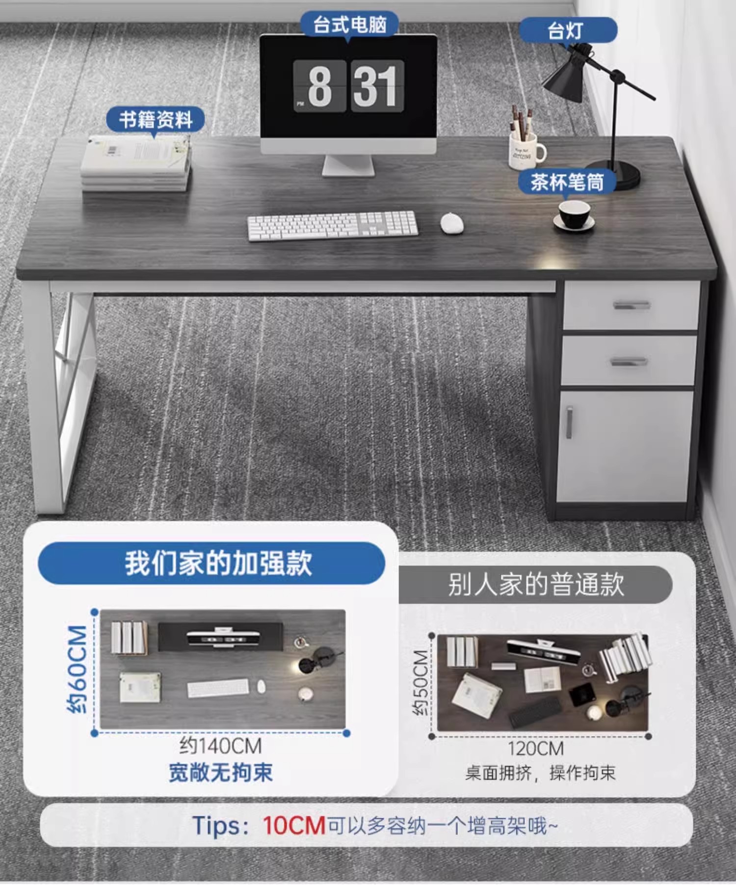 • [두꺼운 30MM 데스크탑 + 40MM 두꺼운 철제 프레임] 싱글 시트-160*60| 천진 그레이
