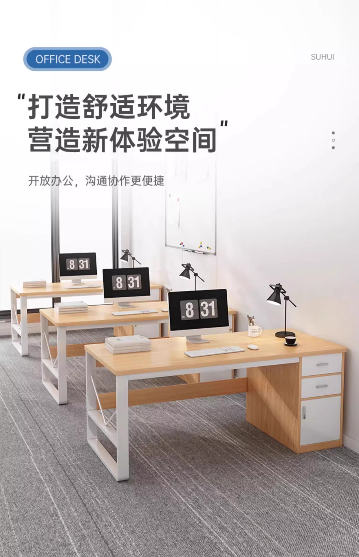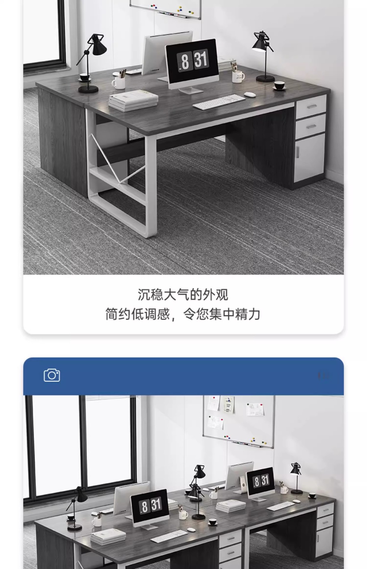 직원용 책상, 심플하고 모던한 사무용 책상과 의자 조합, 간단한 직원 작업대, 가정용 컴퓨터 책상스토어 가기
