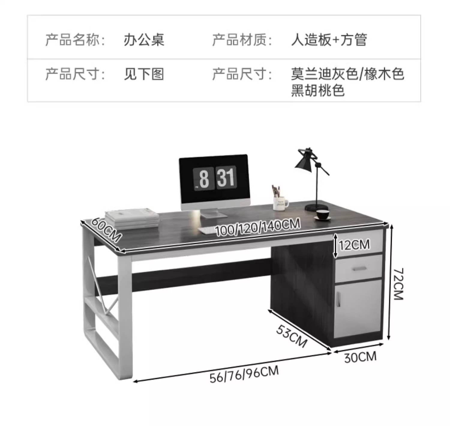 • [두꺼운 30MM 데스크탑 + 40MM 두꺼운 철골 프레임] 1인용 시트-120*60| 천진 그레이
