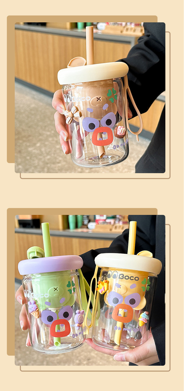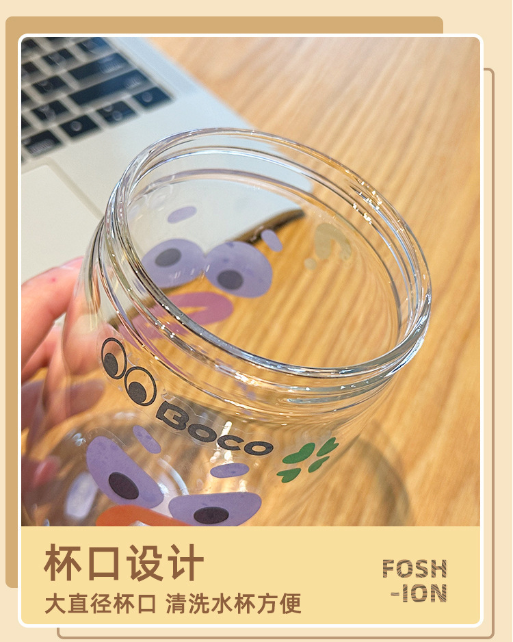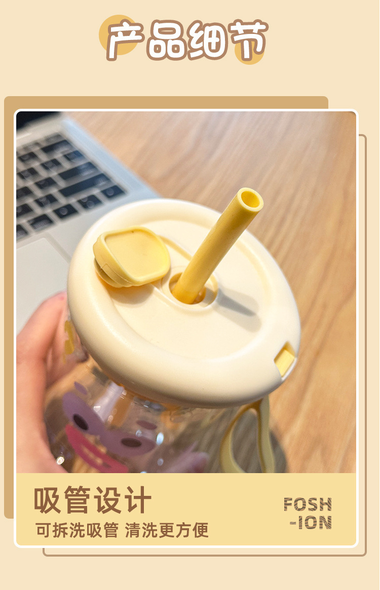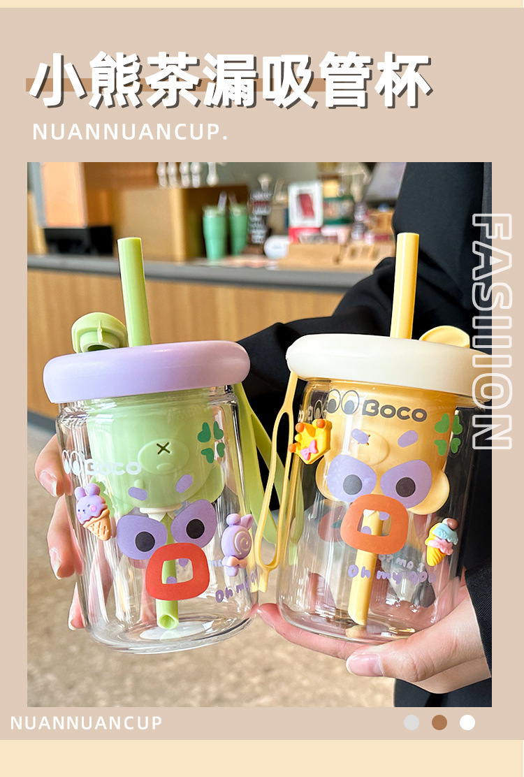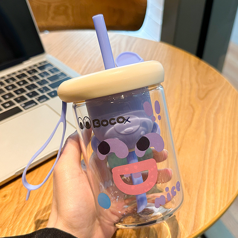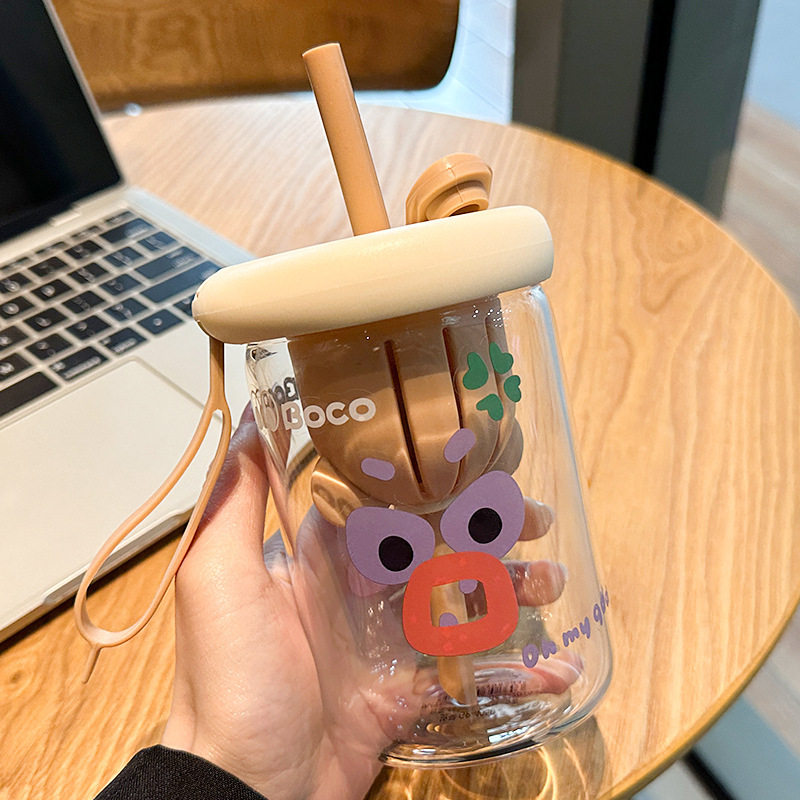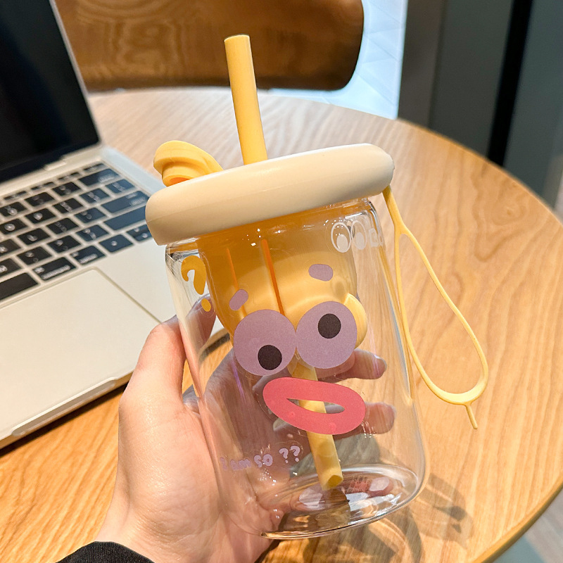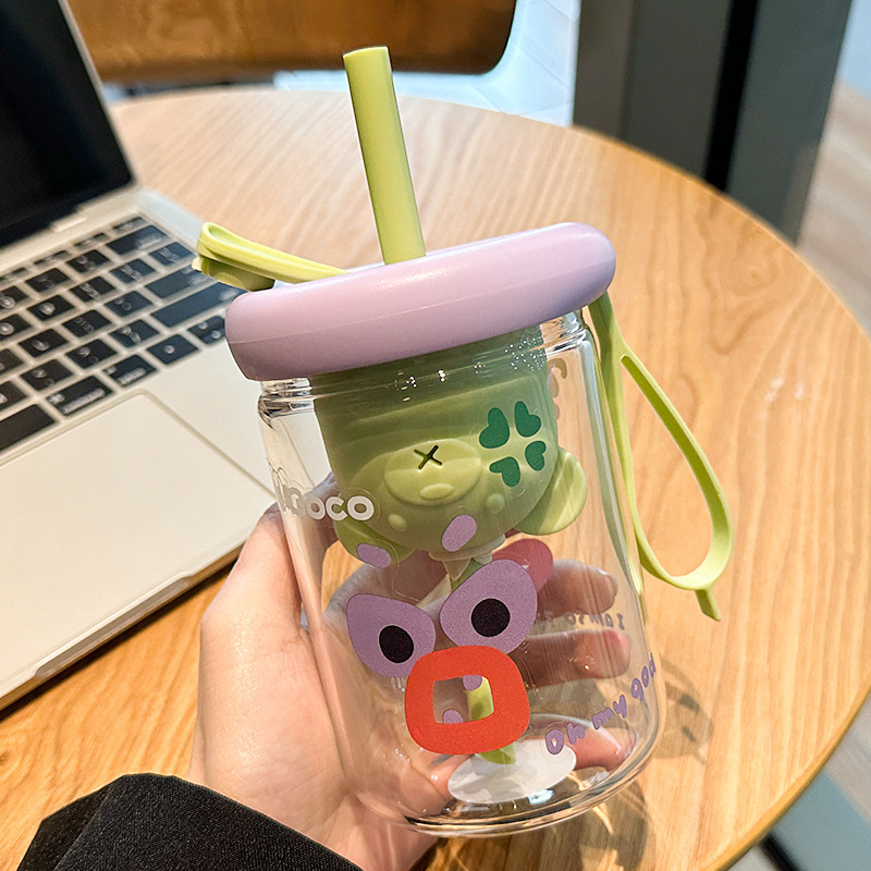 여름 물 컵 소녀 대용량 밀짚 유리 새로운 높은 색상 값 높은 온도 저항 컵 가정용 인터넷 뚜껑으로 축하스토어 가기